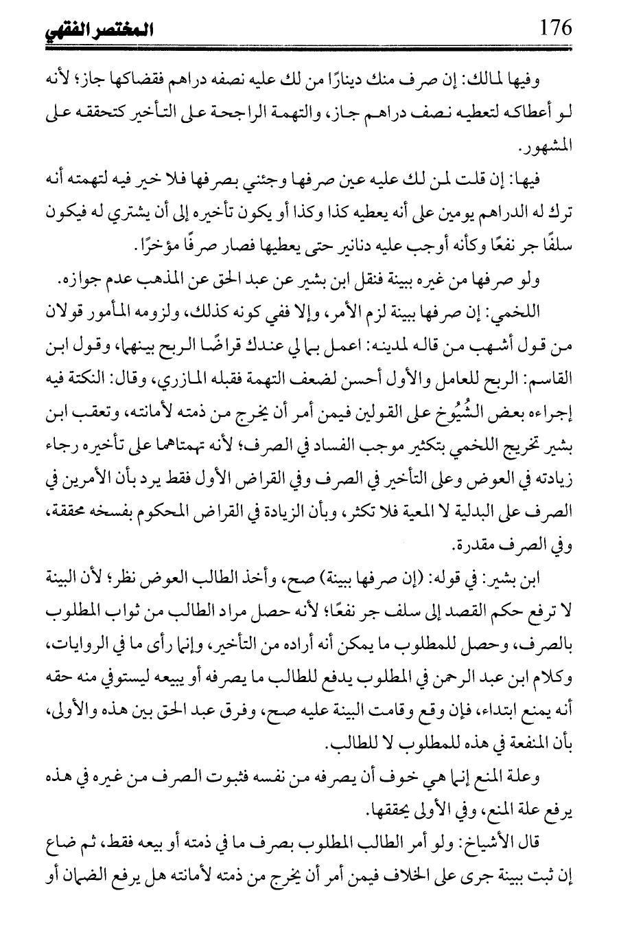 ابن شاس: لا ينتقض صرف مسكوك باستحقاقه حين عقده إلا أن يعين فيجري على الخلاف، وبعد الفرقة والتراخي.