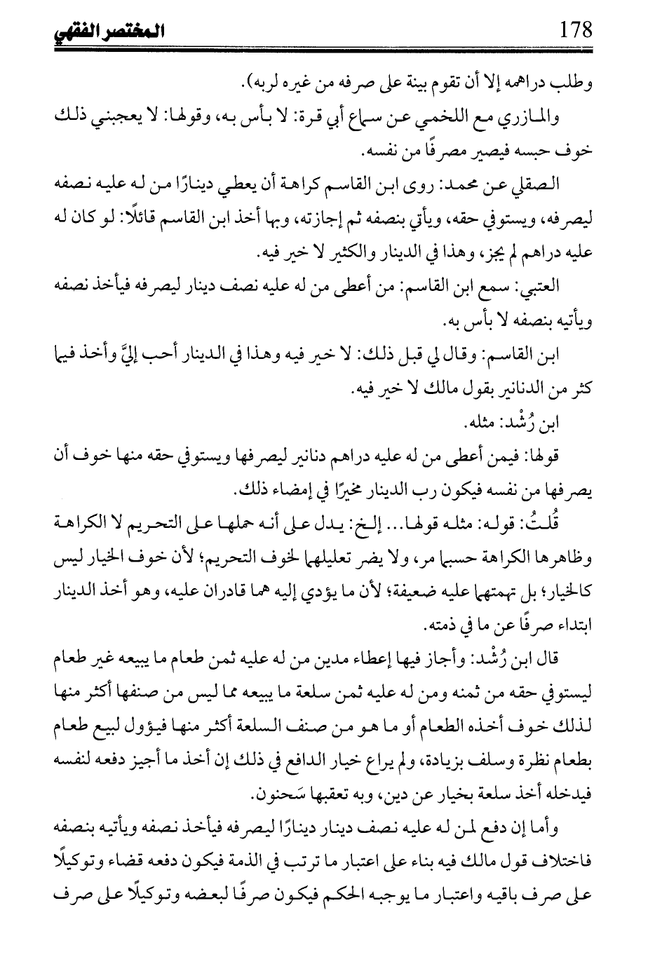 قُلتُ: نقل عياض عن سَحنون صريح الجواز في الخلخالين دون حضورهما وناقض بعضهم قول ابن القاسم في الطعام بقوله في الخلخالين وأجاب ابن الكاتب بأن الطعام ضمنه المتعدي فصار في ذمته، وبائع الخالخالين غير ضامن لعدم تعديه، وأكده ابن محرز بقول محمد: من غصب خلخالين فصرفهما أو راطلهما، وفاتا، لربهما إمضاء البيع وأخذ الثمن.