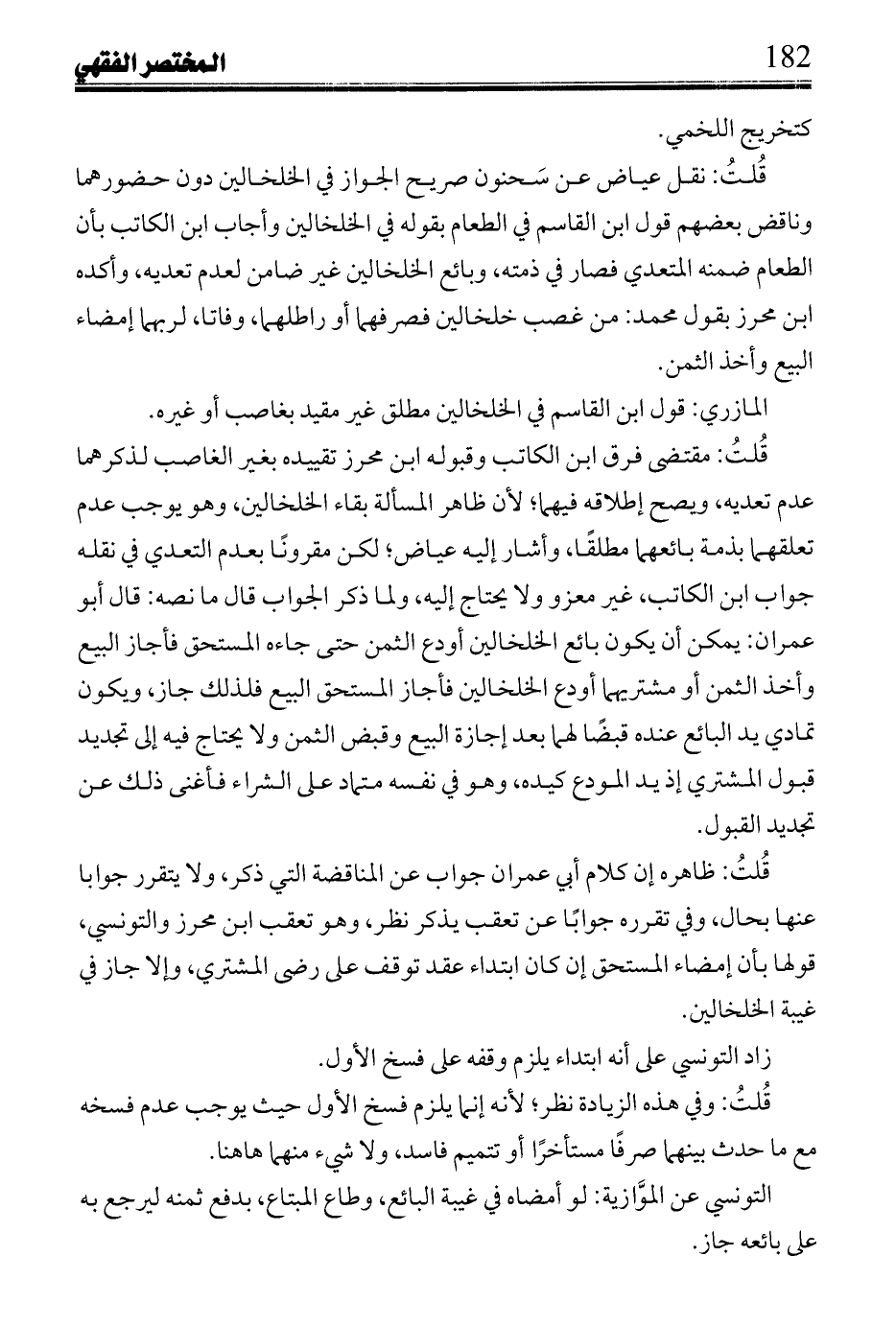 قُلتُ: الدراهم أو كثرت ولا حجة فيه إلا أن يكون له قول غيره، ونحوه للمازري وقول ابن الحاجب: إن كان البيع أكثر من الثلث لم يجز اتفاقًا إلا في أقل من دينار بناء على رد هذا النقل عن ابن حبيب.