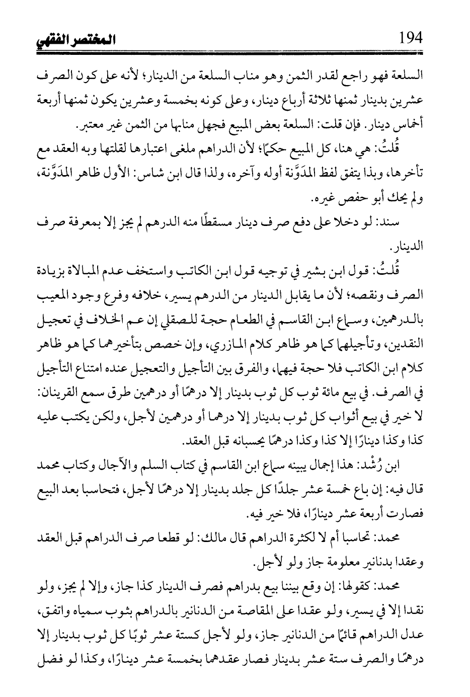 قُلتُ: الفضل بينهما في الدراهم لعدم توقفه على غيرهما، ولا عوض ونوقض قولها. بقولها يجوز رهن المشاع ويتم حوزه، وحوزه مناجزة، ويجاب بأن المطلوب في الرَّهن مطلق الحوز، وفي الصرف الحوز، والفضل فيما تبايعاه لقول عمر رضي: والله لا تفارقه وبينك وبينه شيء اللخمي: والنقرة كالدينار لا كالدراهم. الشَّيخ: روى محمد من ابتاع سوارين على أن فيهما أربعين درهمًا فوجد فيهما قبل الفرقة فضلًا، إن ترك ذو الفضل فضله صح، وإلا فلا، ولو قبض المبتاع الجميع.