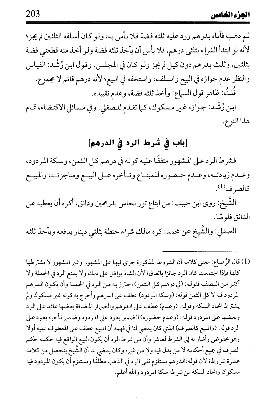 ابن محرز: أمضاه بالثمن لا القيمة لخفة كراهيته بخلاف ما نصله تبع لحليته، وجعله بعض المذاكرين تناقضًا غير صحيح.