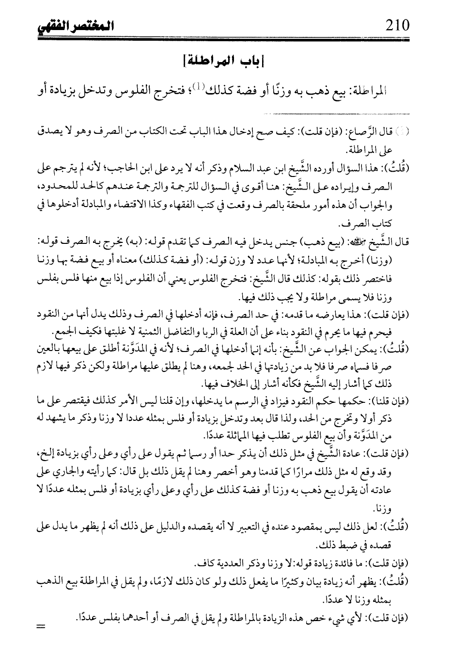 قُلتُ: وتمامه بجواب سؤال إن قيل: كما لزم فض المنفرد الوسط على ما هو وسط منهما، يجب فض المسكوك الأدنى من مقابله الأجود غير مسكوك؛ لأن سكته وسط بين جودة ما يقابله وعدم سكته قيل ما هو وسط بينهما في مسألة المنع أمران كل منهما قائم بنفسه يستقل بتعليق التقويم به دون الأخر فتتعدد قيماتهما فيمكن الفض، وما هو وسط بينهما في صورة الجواز أمران هما صفتان لموصوف واحد لا يستقل أحدهما بقيمة دون الآخر، وما هما له يمكن تقويمه من حيث كونه موصوفًا بهما، فاتحدت القيمة فامتنع الفض.