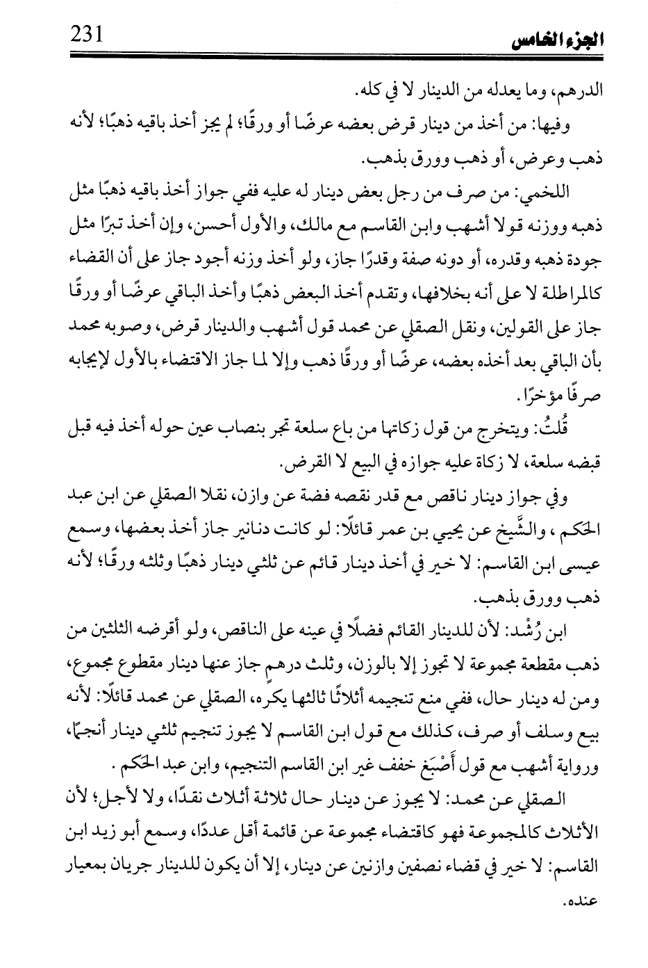 وفيها: اقتضاء ما لزم عن استحقاق عرض أخذ عن أحد عوضي الصرف متعلق بعرض عوضه دونه كقول: استحقاقها ما صرف ثمنه من مبتاعه، يوجب رجوع مبتاعه بما دفع لا بما عقد.