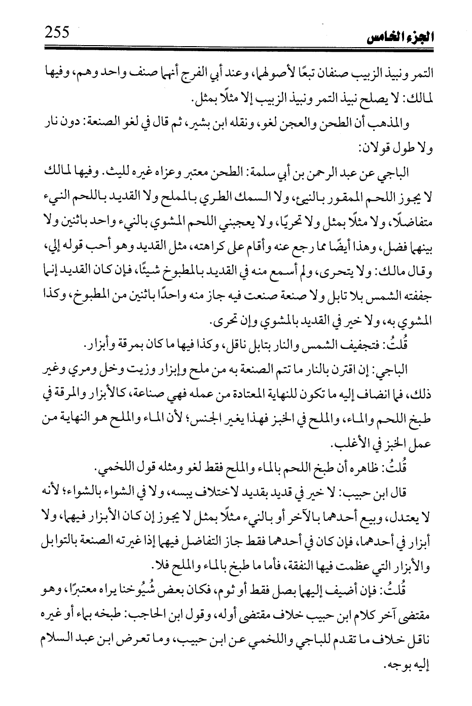 ابن القاسم: لا خير في قديد بمشوي وإن تحرى، ولا في طري السمك بمالحه وإن تحرى.