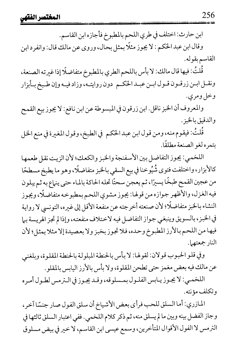 ابن بشير: غي بيع ذي الرطوبة الطارئة بعضه ببعض مثلًا بمثل الجواز لتساوي حالتيهما، والمنع؛ لأن المقصود حالة الجفاف، ولا يقطع بالتساوي فيهما وتوهم الفضل كتحققه.