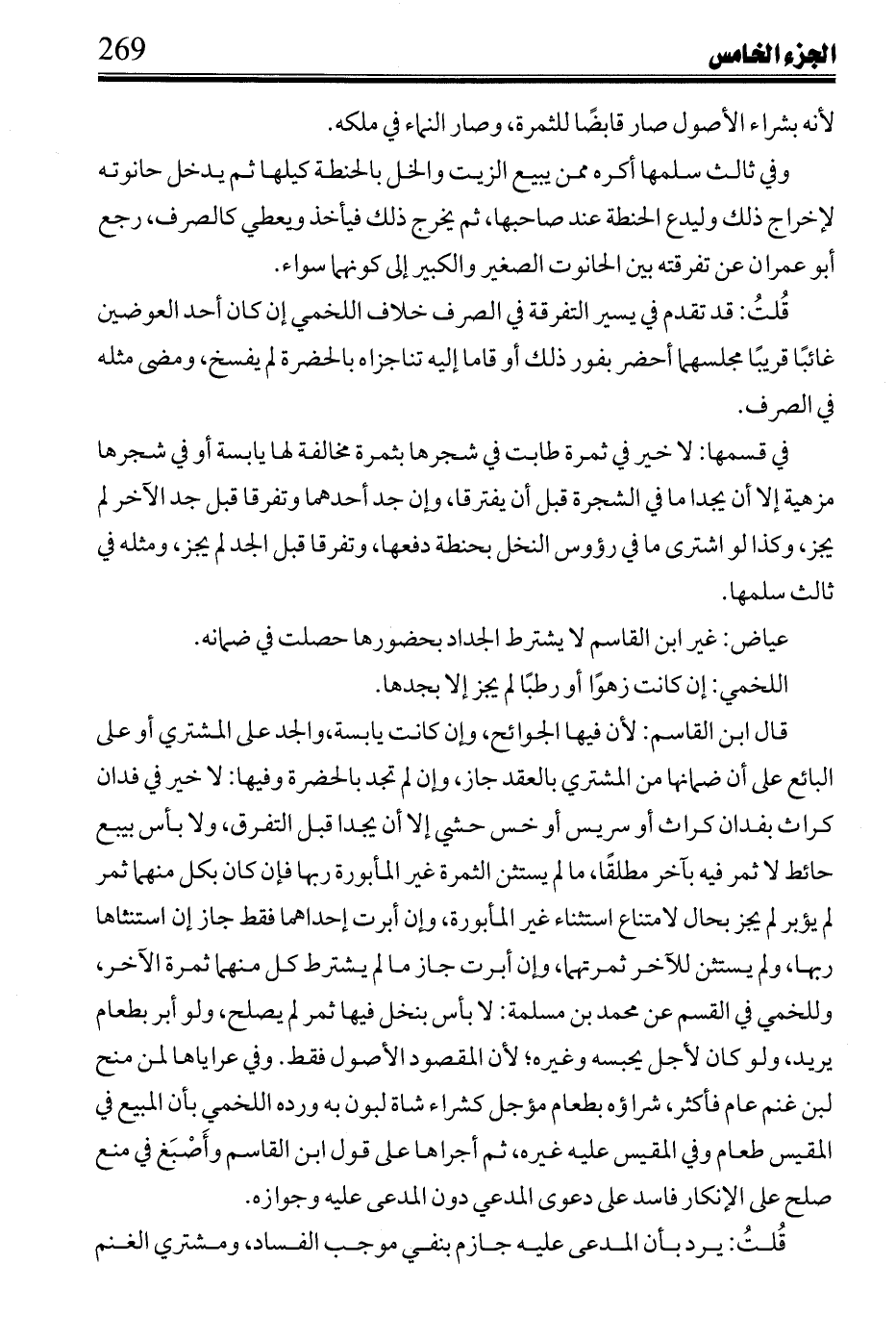 ابن رُشْد: أصل هذا نهيه صلى الله عليه وسلم عن المزابنة وهي في صنف واحد كون أحد العوضين