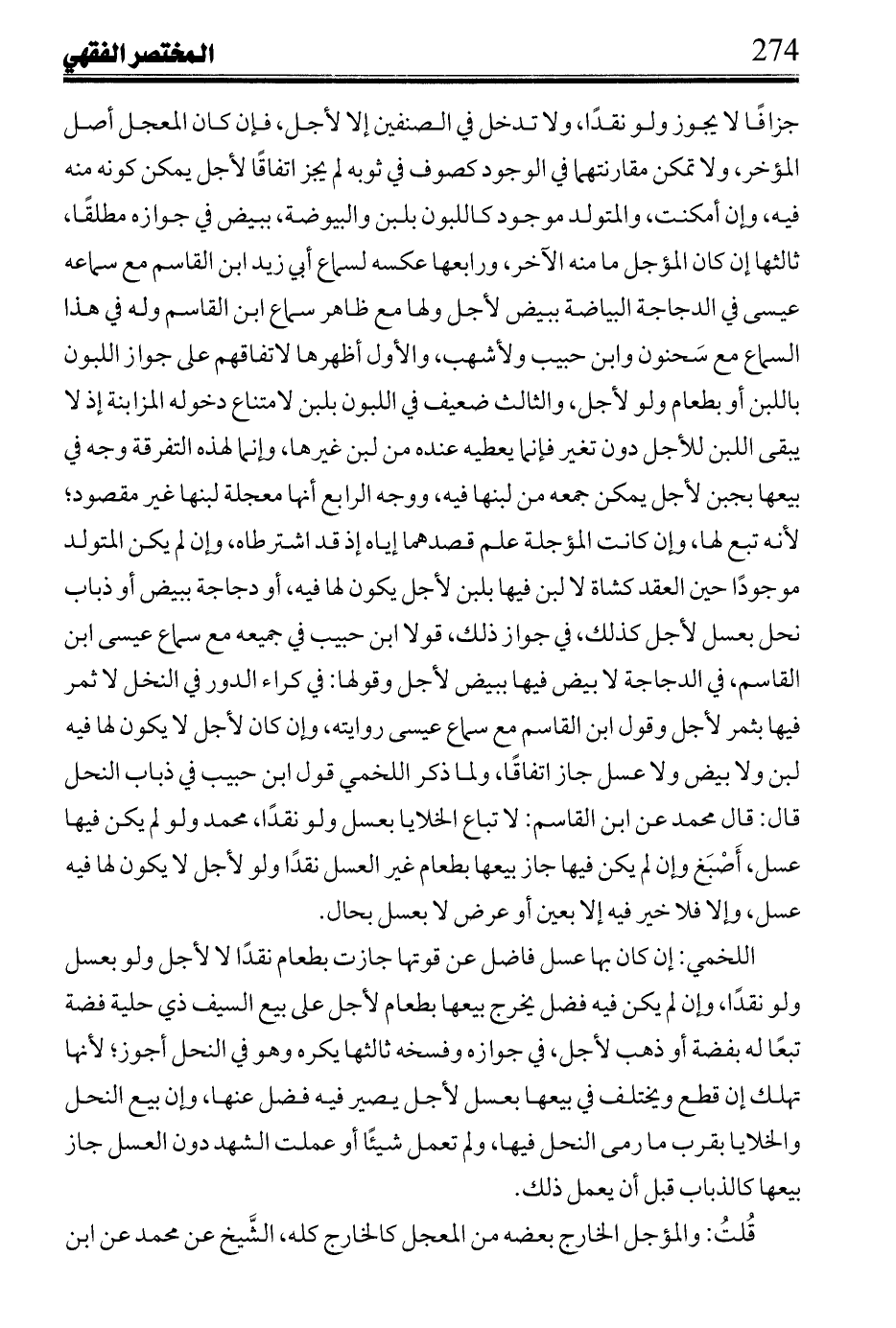 وفي ثالث سلمها: لا خير في شعير نقدًا في قصيل لأجل إلا لأجل لا يصير الشعير فيه قصيلًا ويكون مضمونًا بصفته.