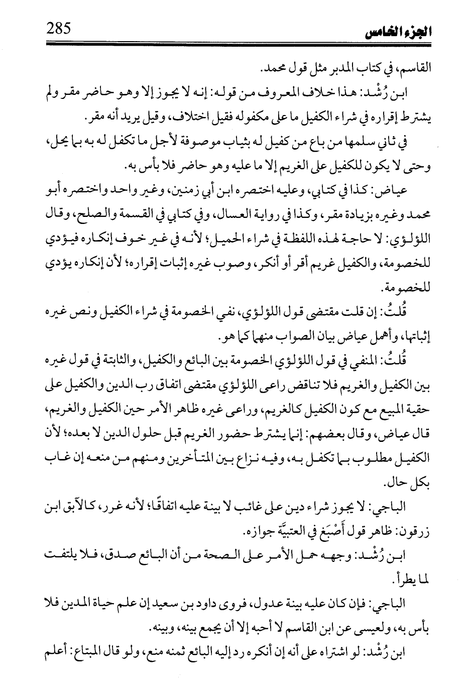 الثاني: الملازمة التي ادعى صحتها، وادعى بطلانها لازمها، وهو كذلك ينتج له إن وصف الحاجة في يسير الغرر، لا شتراط في لغوه، وذلك باطل للاتفاق على صحة بيع جبة محشوة بحشوها المجهول وفساد بيع حملة ثياب قيمتها ضعف قيمة الجبة مع حشو الجبة دونها صفقة واحدة ولا فرق غير الحاجة، للحشو في بيعه مع حببته وعدمها في بيعه مع الأثواب.