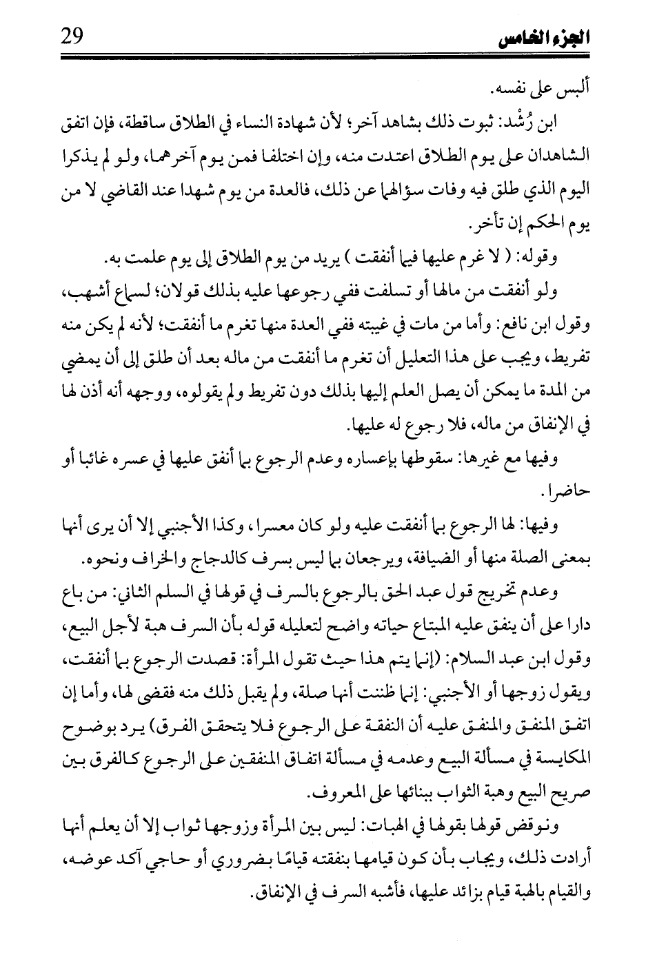 وعدم تخريج قول عبد الحق بالرجوع بالسرف في قولها في السلم الثاني: من باع دارا على أن ينفق عليه المبتاع حياته واضح لتعليله قوله بأن السرف هبة لأجل البيع، وقول ابن عبد السلام: (إنما يتم هذا حيث تقول المرأة: قصدت الرجوع بما أنفقت، ويقول زوجها أو الأجنبي: إنما ظننت أنها صلة، ولم يقبل ذلك منه فقضى لها، وأما إن اتفق المنفق والمنفق عليه أن النفقة على الرجوع فلا يتحقق الفرق) يرد بوضوح المكايسة في مسألة البيع وعدمه في مسألة اتفاق المنفقين على الرجوع كالفرق بين صريح البيع وهبة الثواب ببنائها على المعروف.