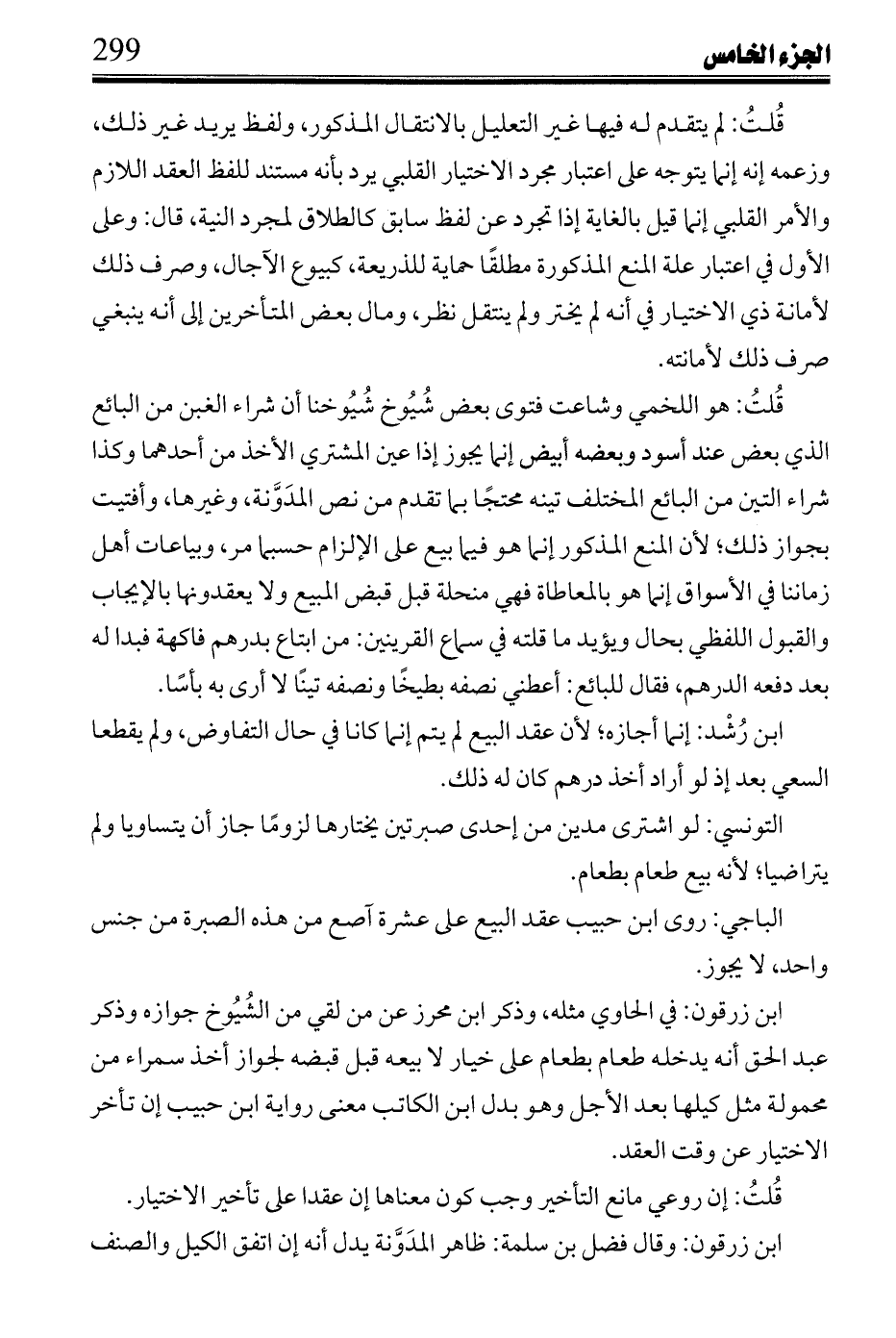 مسلم عن جابر بن عبد الله قال: نهى رسول الله صلى الله عليه وسلم عن بيع ضراب الفحل، وتلقى ابن عبد السلام نقل عبد الحق كل هذه الأحاديث بالقبول وتعقب ابن القطاب على عبد الحق في نقله حديث الترمذي، فقال: ذكره مرفوعًا وإنما هو موقوف لم يذكر فيه النبي صلى الله عليه وسلم، قال: ولفظه عند الدارقطني بسنده إلى أبي سعيد الخدري، قال: «نهى عن عسيب الفحل وعن قفيز الطحان».