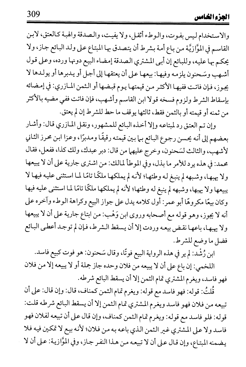عياض: سقط لفظ عشرة في رواية غير يحيي وروى بعضهم مكانها أيامًا يسيرة، وفي الموَّازيَّة لا بأس في الدور والأرضين إلى شهر، ويكره في الحيوان، وهو في العروض باطل ولابن لبابة عن ابن القاسم سبيله إلى شهرين سبيل البيع الفاسد قلت: ولابن حارث عنه سبيله إلى شهر سبيل البيع الفاسد، وفي البيوع الفاسدة منها لمالك لمن اشترى سلعة على أن ينقدها ثمنها إلى ثلاثة أيام، وفي موضع آخر إلى عشرة أيام فلا بيع بيننا، لا يعجبني البيع على شراء، فإن نزل جاز وبطل الرط والسلعة إن كانت حيوانًا، من البائع حتى يقبضها المبتاع، بخلاف البيع الفاسد الصحيح، تحبس فيه بالثمن هلاكها من البائع بعد عقدة البيع.