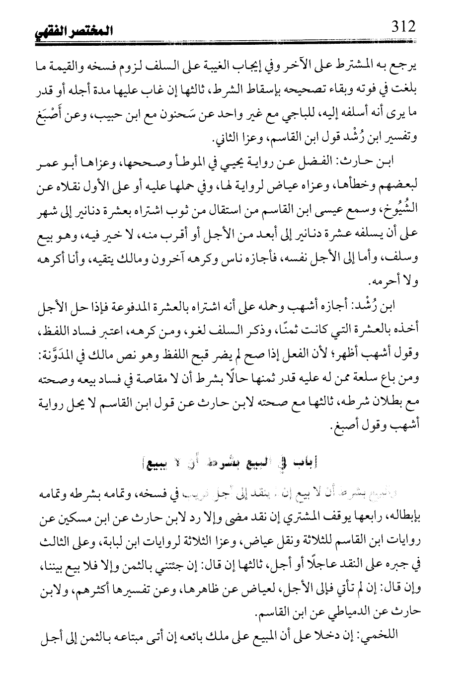 ابن رُشْد: أوجب له أخذه بشرطه، وإن باعه بعد زمان لقوله في الشرط: تى ما باعه؛ لأن لا تقتضي قرب الزمان بخلاف سماع محمد بن خالد لابن القاسم وابن كنانة: التفرقة بين القرب والبعد، إذا أقاله على إن باعه من غيره فهو له بالثمن، وكأن المقيل تخوف من المستقبل إن استقاله ليبيعه من غيره بزيادة أعطيها، وسمع سَحنون ابن القاسم: إن أقاله على ذلك لخوف أن يكون أراد بيعها لربح، إن علم أنه استقاله لبيعها، فبيعه منتقض غير جائز، وإن باع لغير ذلك بدا له البيع في بيعها، وطال الزمان فبيعه جائز كقول مالك فيمن طلب امرأته أن تضع له مهرها فقالت: أخاف إن وضعته طلقتني فقال: لا أفعل، فوضعته ثم طلقها، لها الرجوع عليه بما وضعت، إلا أن يطلقها بعد طول الزمان، وتبين الصحة، فلا رجوع لها.