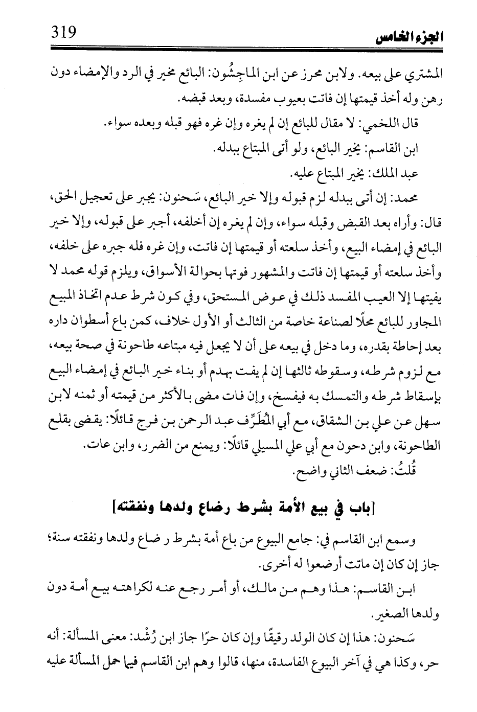 ابن أبي زمنين: روى ابن وضاح أن سَحنونا كان يكره بيع أرض العشور على شرطه ثم قال: لا بأس به، والأكثر على أن نسبة الجواز والمنع لأشهب وابن القاسم