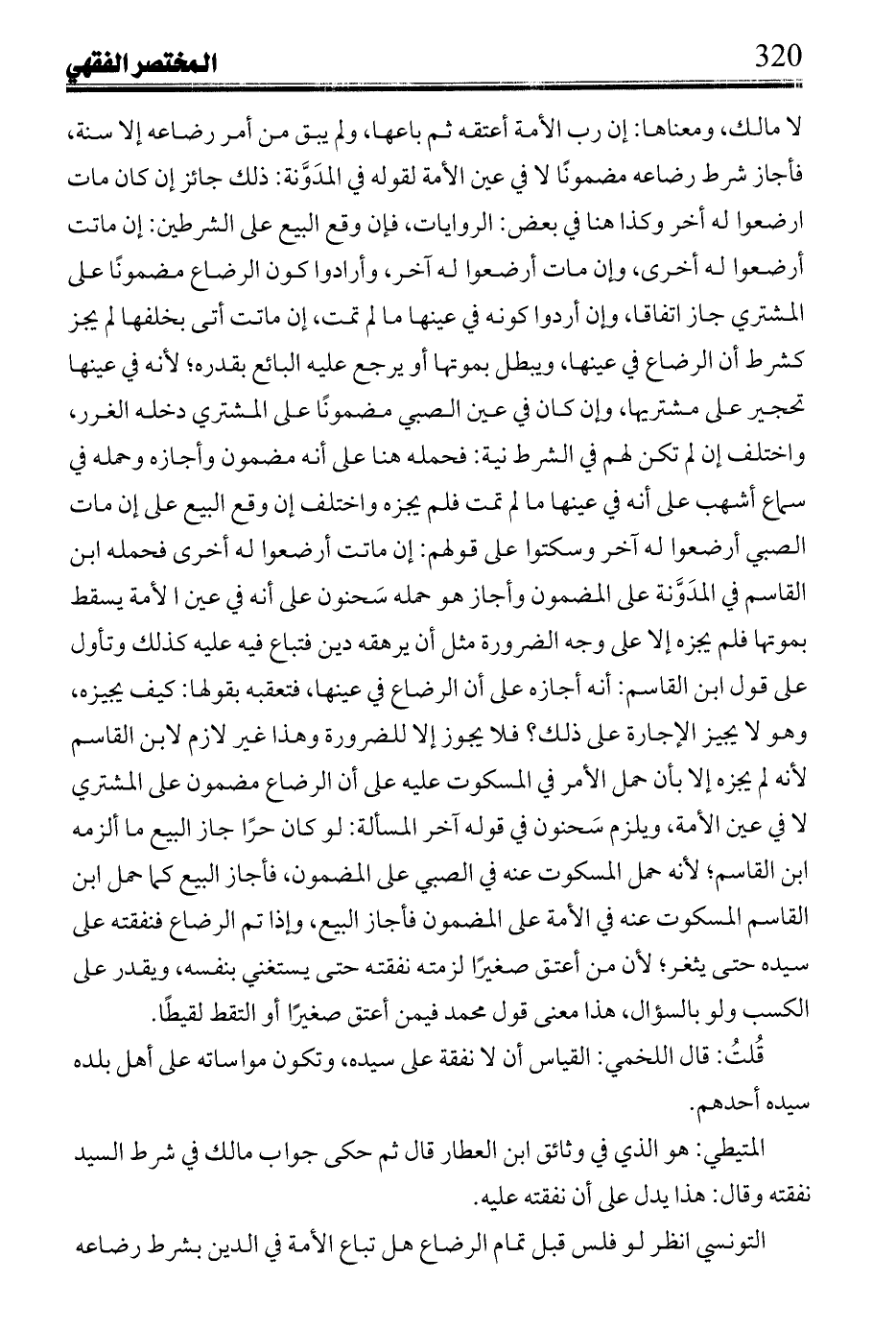 قُلتُ: هذا بين على أن ترجيح قول أشهب عنده لم يبلغ كونه نتيجة اجتهاد مستقل عن تقليد، ولو كان كذلك ما جاز له العدول عنه اتباعًا لما عليه الناس.