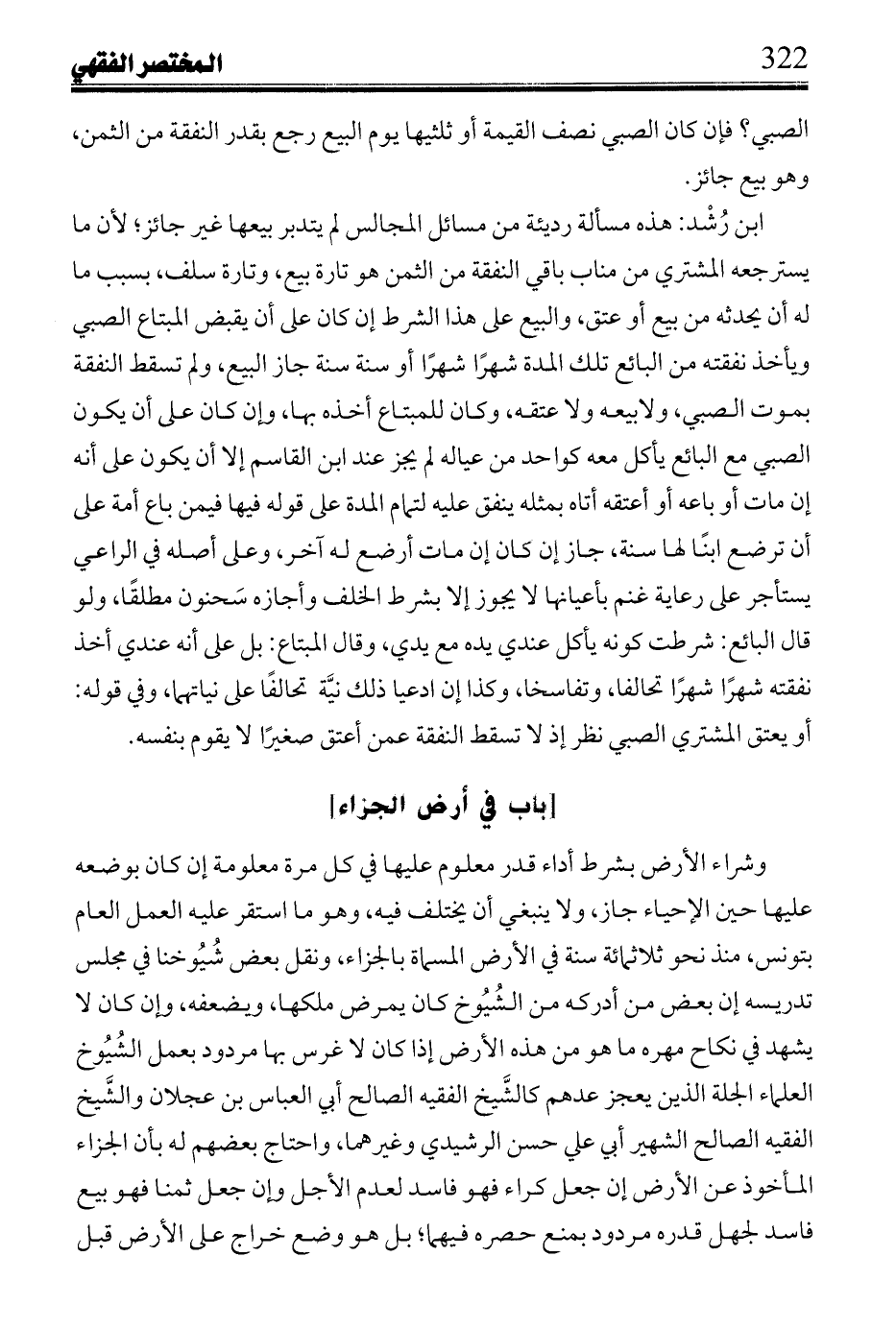 قُلتُ: ويجري عليه لو وقع بيع أرض الجزاء ببلدنا مع السكت عن من يكون عليه جزاء عام البيع، فإن كان قبل فوات معظم وقت دفعه فهو على المبتاع وإلا فهو على البائع، وإن اختلفا فيمن شرط عليه تحالفا وتفاسخا إن لم يفت المبيع، وإلا فالقول قول من القول قوله في حال السكت مع يمينه.