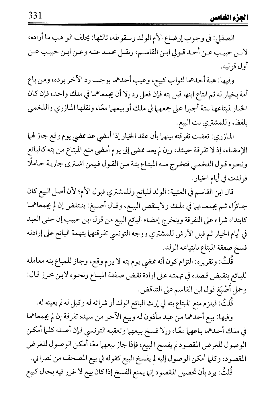 قُلتُ: فيه على لزوم فسخ بيع التفرقة نظر لتأخر العتق عنه، وصح حديث ابن عمر أن رسول الله صلى الله عليه وسلم قال: «لا يبع بعضكم على بيع بعض» أخرجه مالك ومسلم وأبو دود وعند ابن ماجة عن أبي هريرة عن النبي صلى الله عليه وسلم قال: «لا يبيع الرجل على بيع أخيه ولا يسوم على سوم أخيه» الباجي: معنى لا يبيع: لا يشتري.