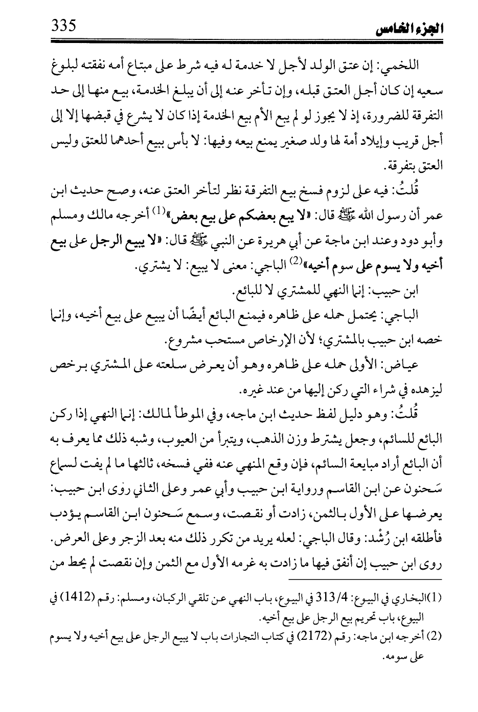 ابن العربي: حكم ابن حبيب بفسخ البيع خروج عن طريق النظر.