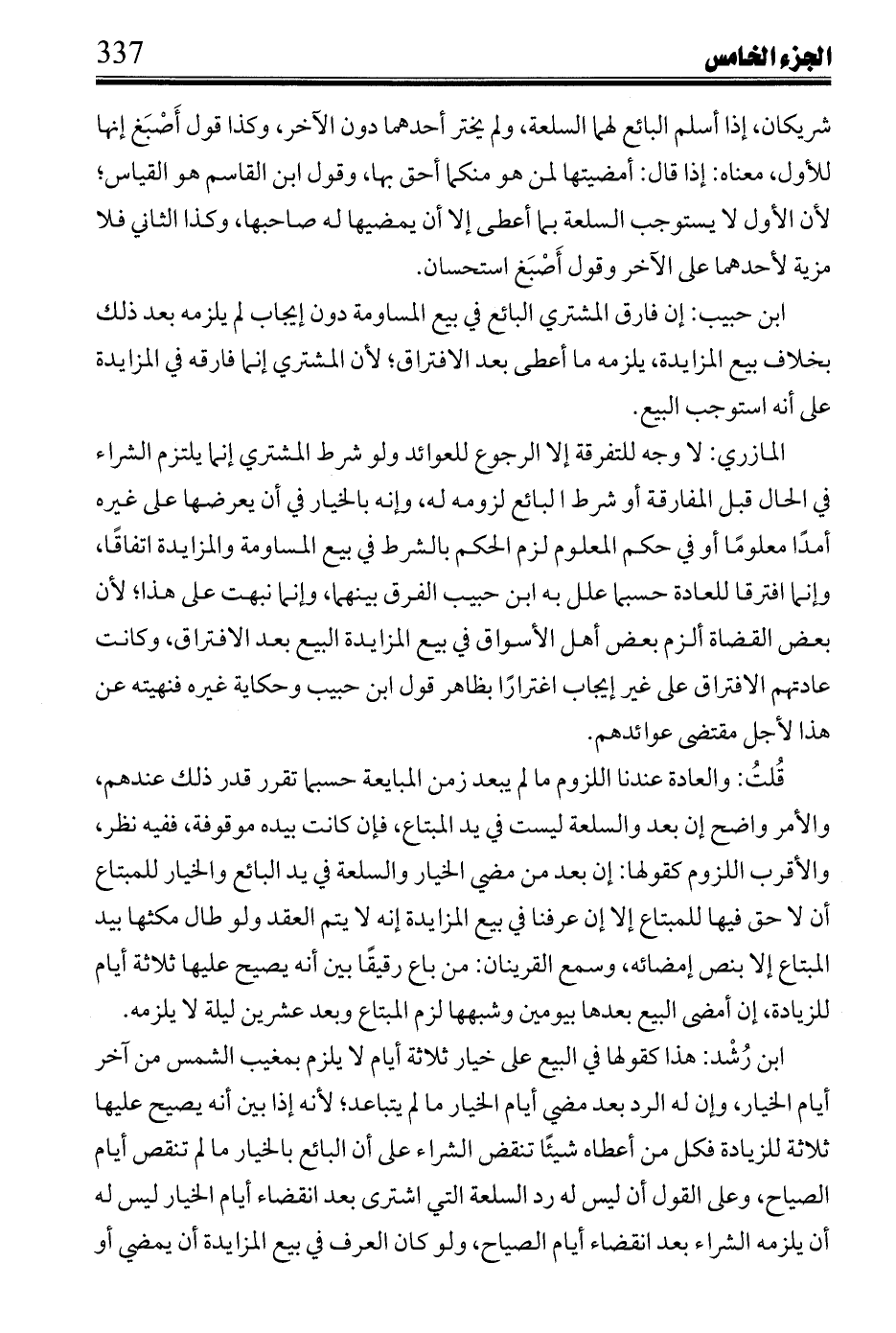 ابن حبيب لم يأخذ به أَصْبَغ ولم يره من النجش وبه أقول؛ لأن صاحبه لم يرد أن يقتدي بزيادته إنما أمسك عن الزيادة ليرخص على نفسه وعلى صاحبه فلا بأس به.