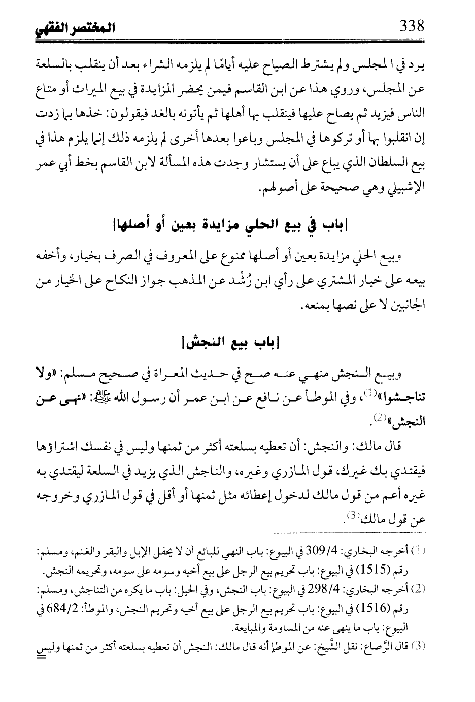 وبيع الحاضر للبادي منهي عنه، روى البخاري عن مالك عن أبي الزناد عن الأعرج عن أبي هريرة أن رسول الله صلى الله عليه وسلم قال: «لا تلقوا الركبان، ولا يبع بعضكم على بيع بعض ولا تناجشوا ولا يبع حاضر لباد ولا تصروا الغنم ومن ابتاعها فهو بخير