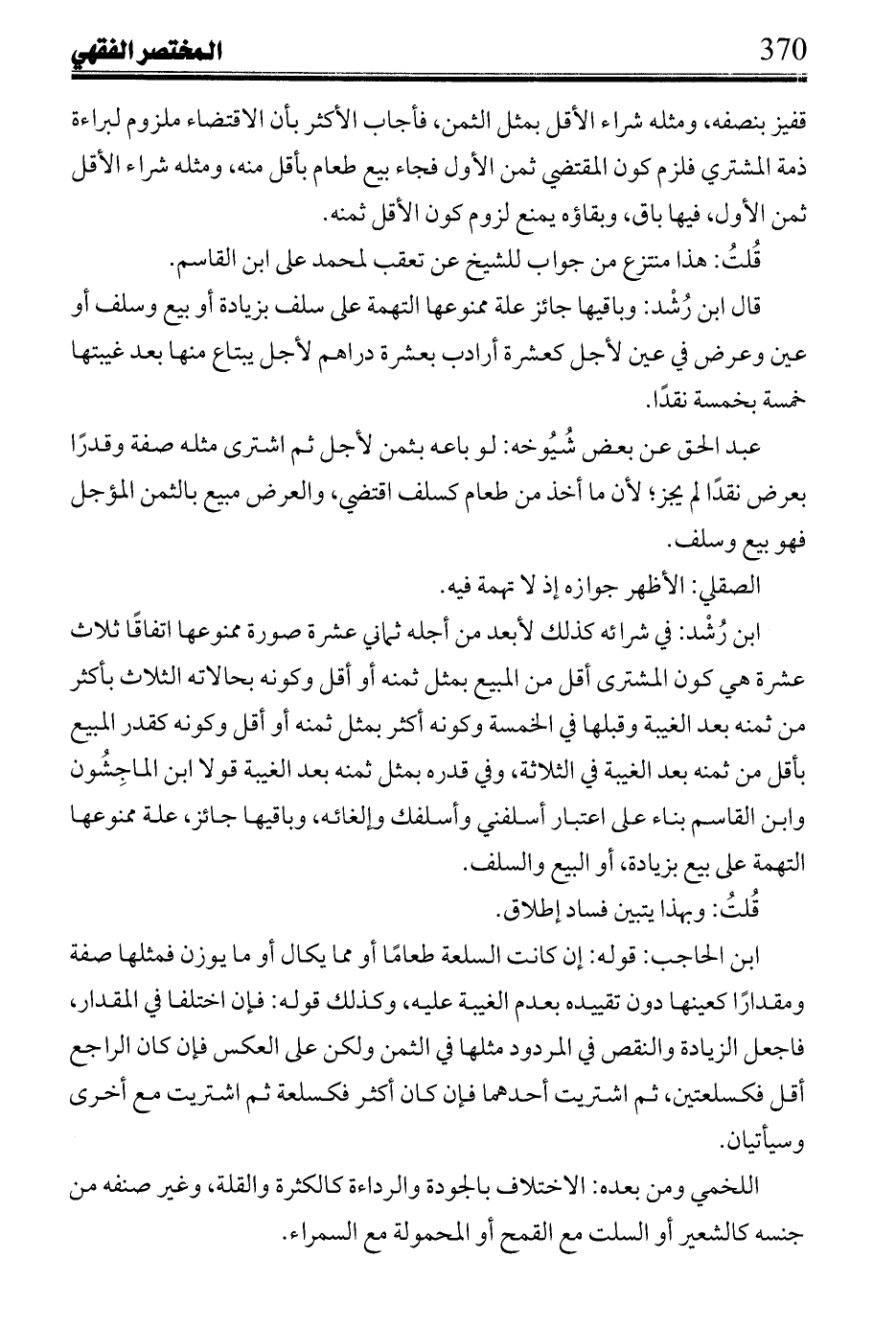 قُلتُ: هو نص سماع عيسى ابن القاسم في السلم والآجال.