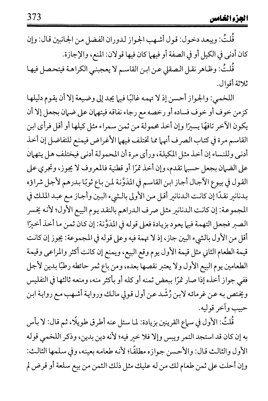 قُلتُ: تخريجه قول ابن القاسم على إجازته ذريعة الذريعة مع قوله منع المقاصة لذريعة الذريعة يقتضي إجازة ابن القاسم المقاصة وهو لم يجزها حسبما مر في السماع إنما أجاز في المَّازيَّة أخذ الدينار بعد دفعه، وهو إجازة منه لذريعة الذريعة، وهو الذي خالف فيه مالكا، وللشيخ عن المَّوازيَّة إن قبضت ثمن طعام من رجل فلا تبيع منه به في المجلس طعامًا.