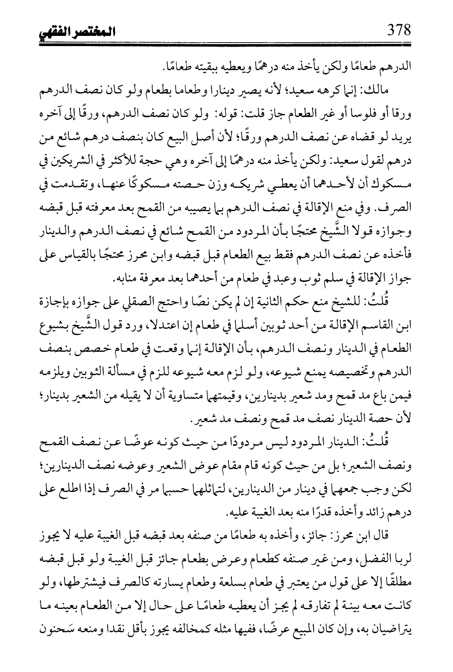 ونه أكثر منه جدًا ينفي كونه ثمنًا له ولا علة فيه سواه وفي استرجاع بعضه هذا، وعلة عرض وعين مؤخرة والكثرة لا تنفيها.