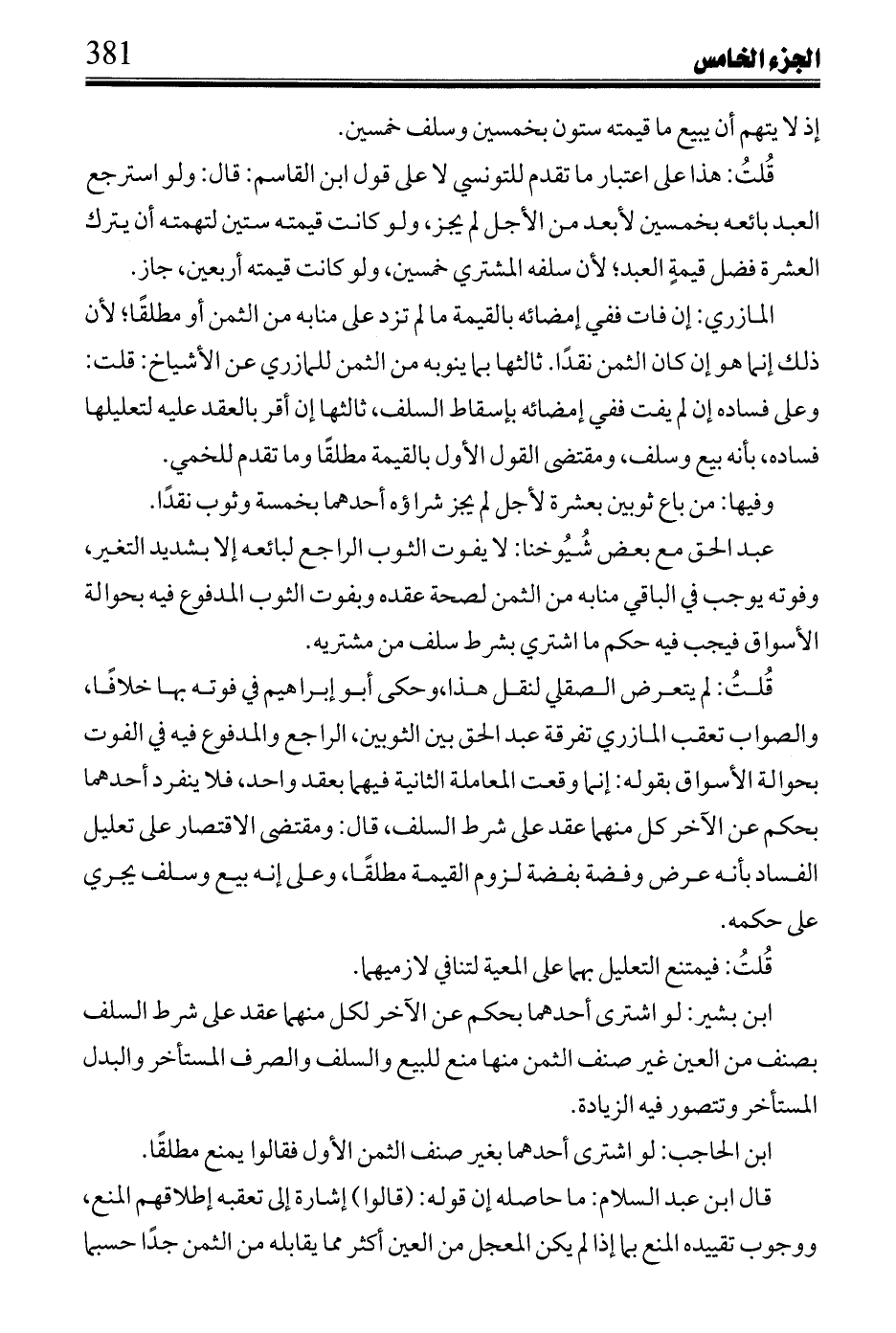 الحق في أجله لدافعه فصار كحال، والمعتبر ثمنًا فيه العشرة لا التسعة قال: فإن قيل إنما جعل ثمنه تسعة والعاشر سلف، قيل: إنما قدر ذلك تهمة لهما، والمشتري إنما دخل على أن الثمن عشرة.