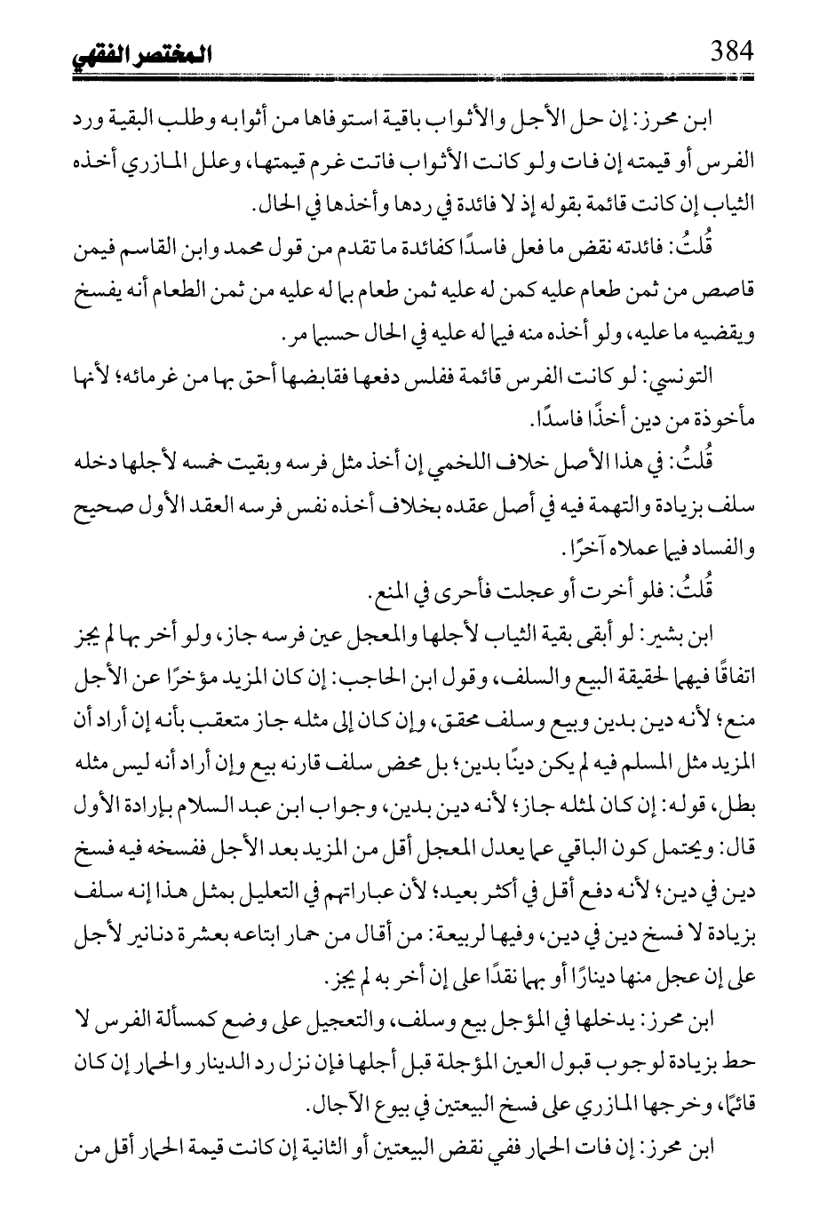 ابن مزين: لو كان مشتري السلعة يريد بيعها ساعة يقبضها فلا خير فيه ولو لم يكن البائع غائبًا فليحق هذا علي قوله بالمكروه، وصور محظورها ثلاث: