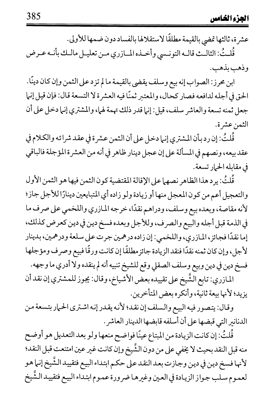 ابن رُشْد: وهو بعيد وحمل على علم البائع الأول بعملها، وفي لزوم الأقل من جعل المثل والربا الثلاثة الأقوال.