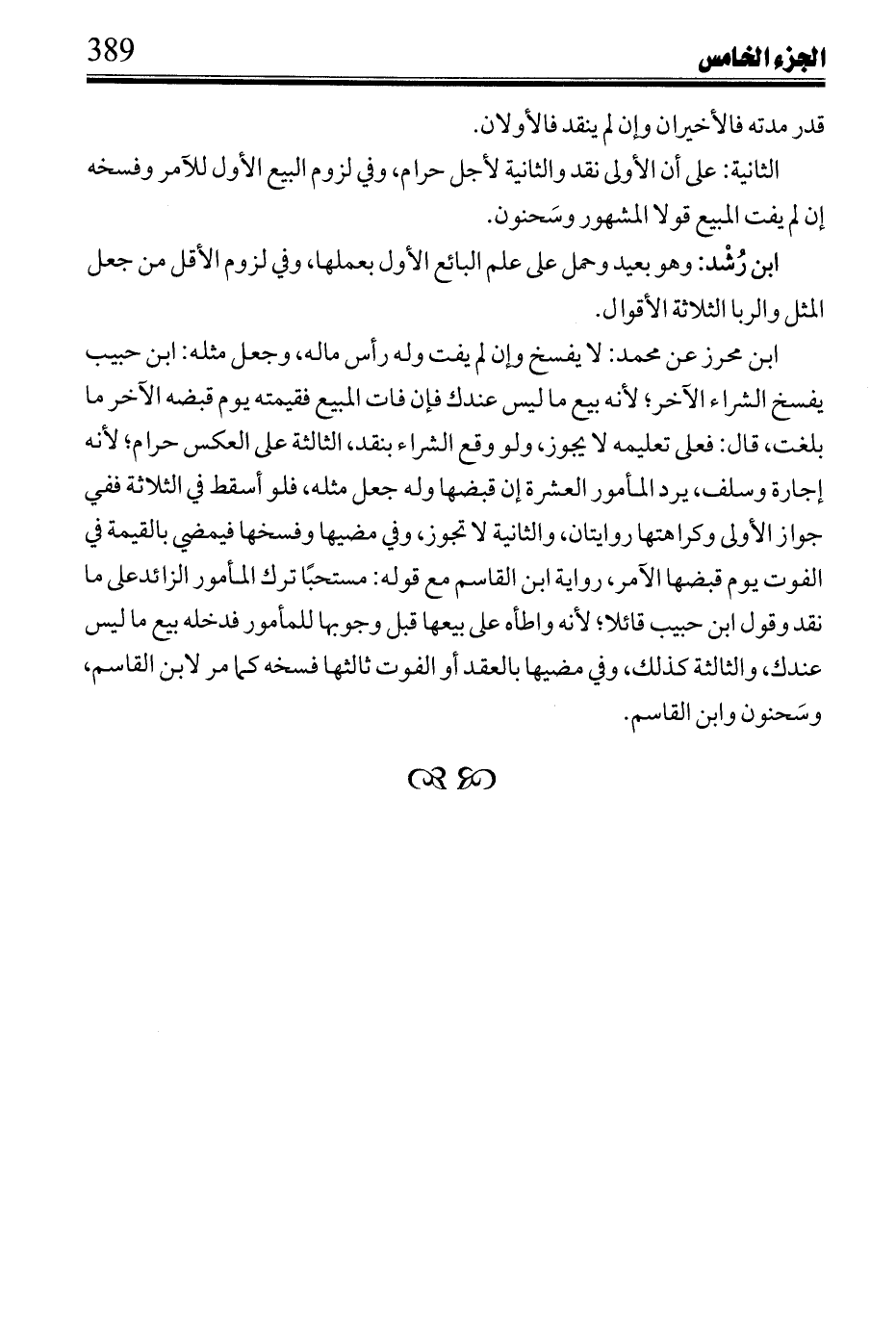 محمد: يمنع بقاؤه بيد بائعه، وأجازه بعض شُيُوخ عياض قال: وقول محمد إن شاحه المبتاع ابن محرز: ولو باع عرضًا بعرض اعتبر أمد المقصود منهما بالخيار.