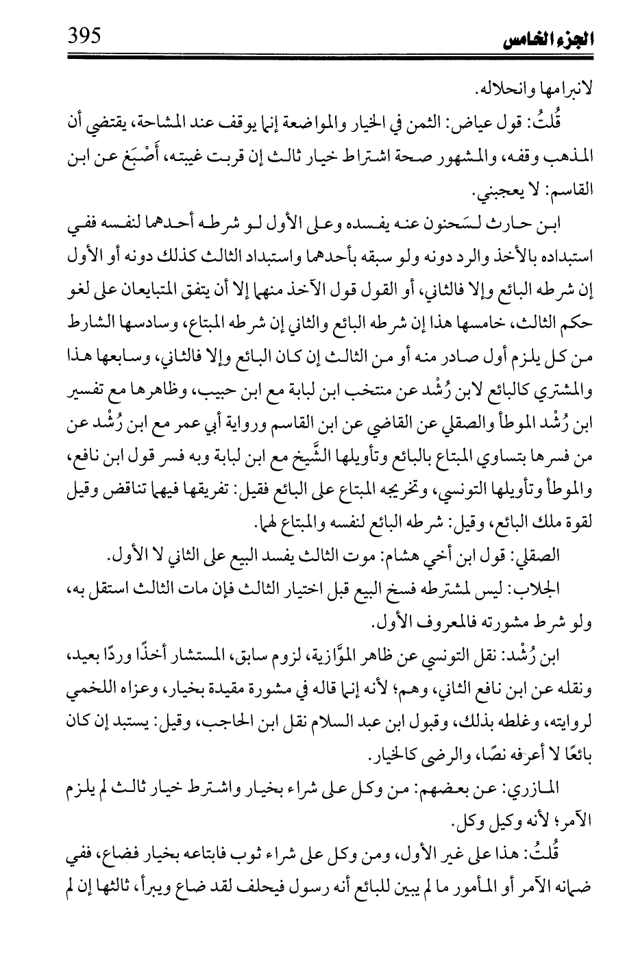 عياض: في بعض رواياتها لابن القاسم الربح للبائع إلا أن يحلف أنه اختار