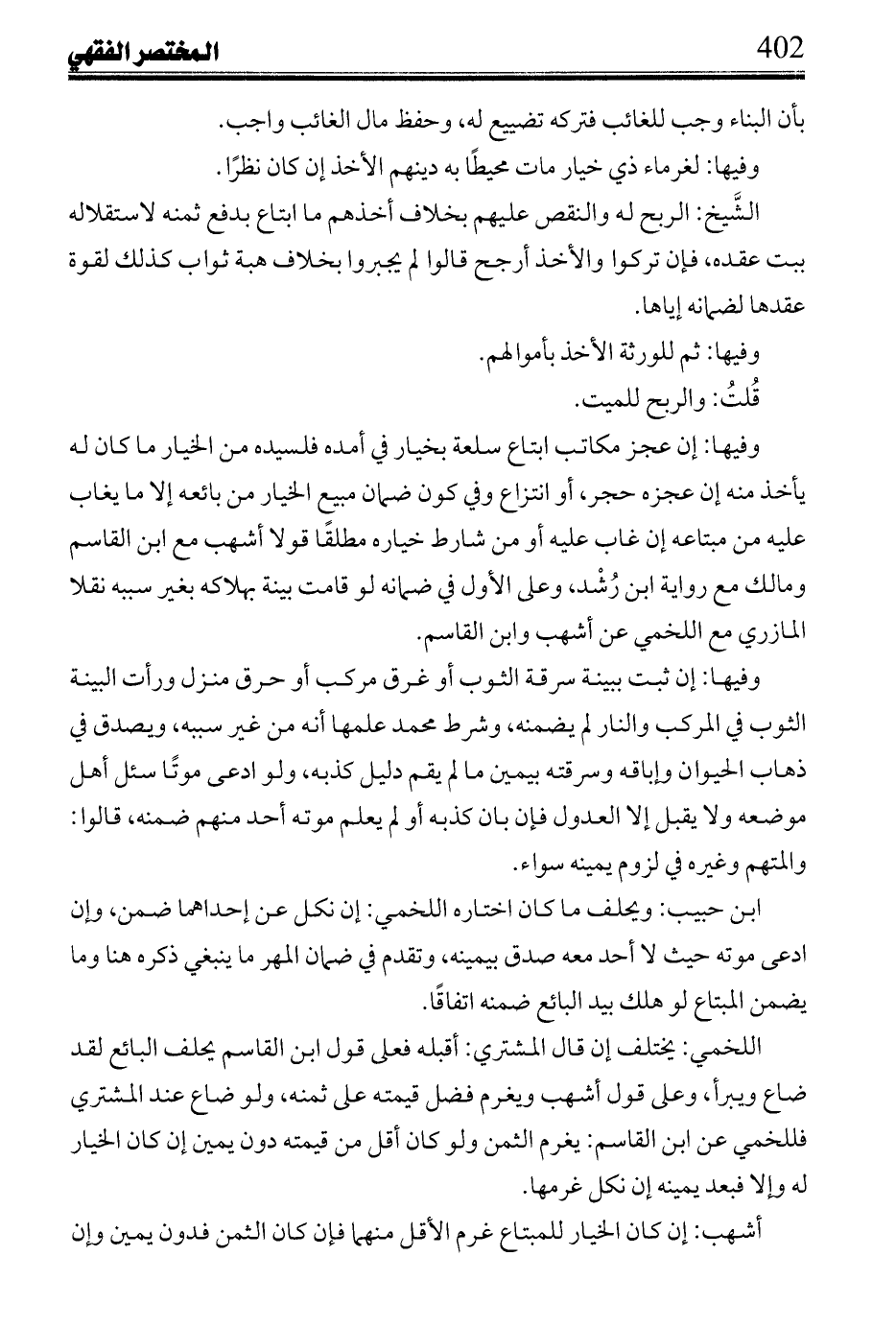 الاستيفاء وبت الخيار لا الرد لاستحقاق الأكثر وعبر ابن شاس وابن الحاجب تابعين للغزالي بخيار النقيصة وحالة المبيع المعتبر نقصها، إما بشرط أو عرف فشرط ما لا ينقص ولا غرض فيه بوجه لغو، وتخريج ابن بشير إيجابه الخيار من الخلاف في لزوم الوفاء به تخريج للشيء على نفسه والخلاف فيه منصوص، سمع عيسى ابن القاسم: من اشترى أمة على أنها نصرانية فوجدها مسلمة غره بها، وقال: أردت تزويجها غلامًا نصرانيًا أو غير ذلك إن عرف ما قال وأن له وجهًا من حاجته لما ذكر فله ردها، وإن لم
