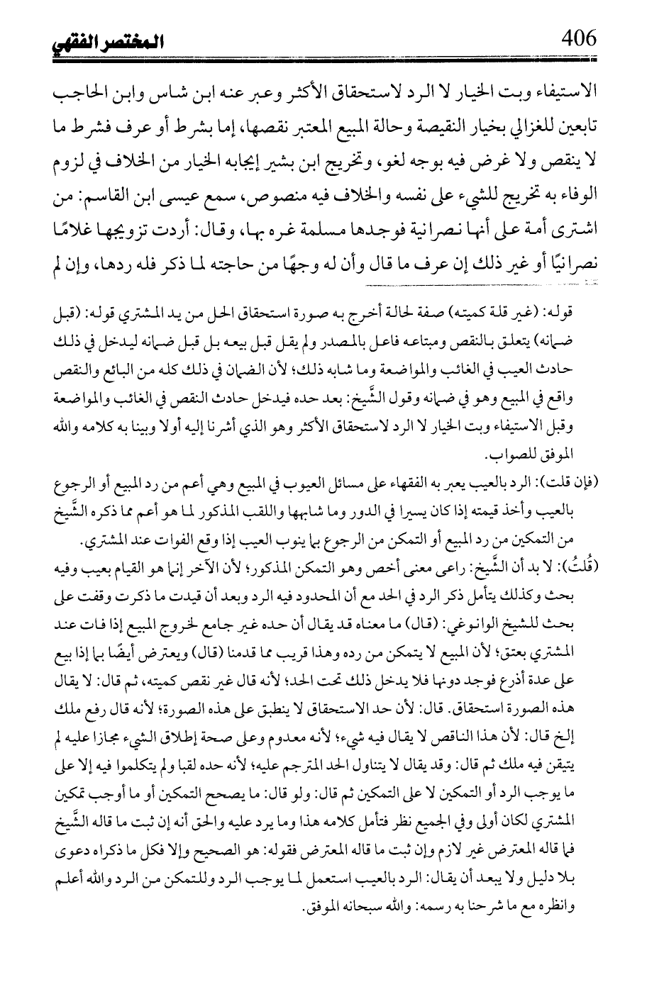 قُلتُ: وكذا نقل محمد عن ابن القاسم بعض شُيوخ عبد الحق لو اشتراها غائبة على الصفة فوجدها زلاء فله ردها لكلام ابن حبيب.