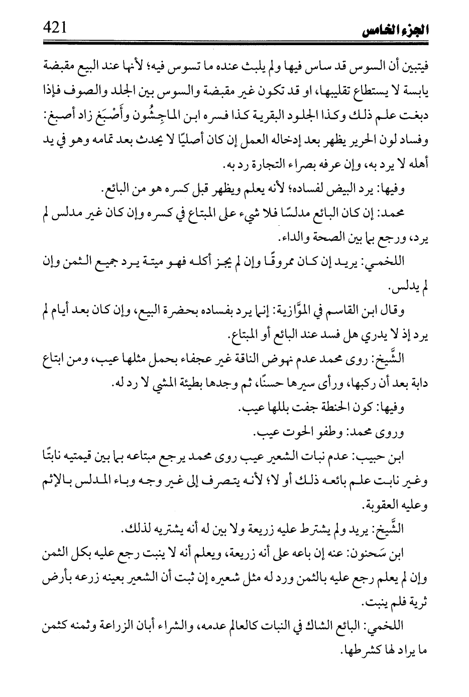 ابن رُشْد: في إخراجه من السوق بشرط اعتياده إياه أو دونه نقل ابن حبيب وسماع ابن القاسم في كتاب السلطان، وعليه يصح رده بعد مدة يرجى فيها أنه قد تاب وإن لم تظهر توبته، وعلى الأول لا يرد حتى تظهر.