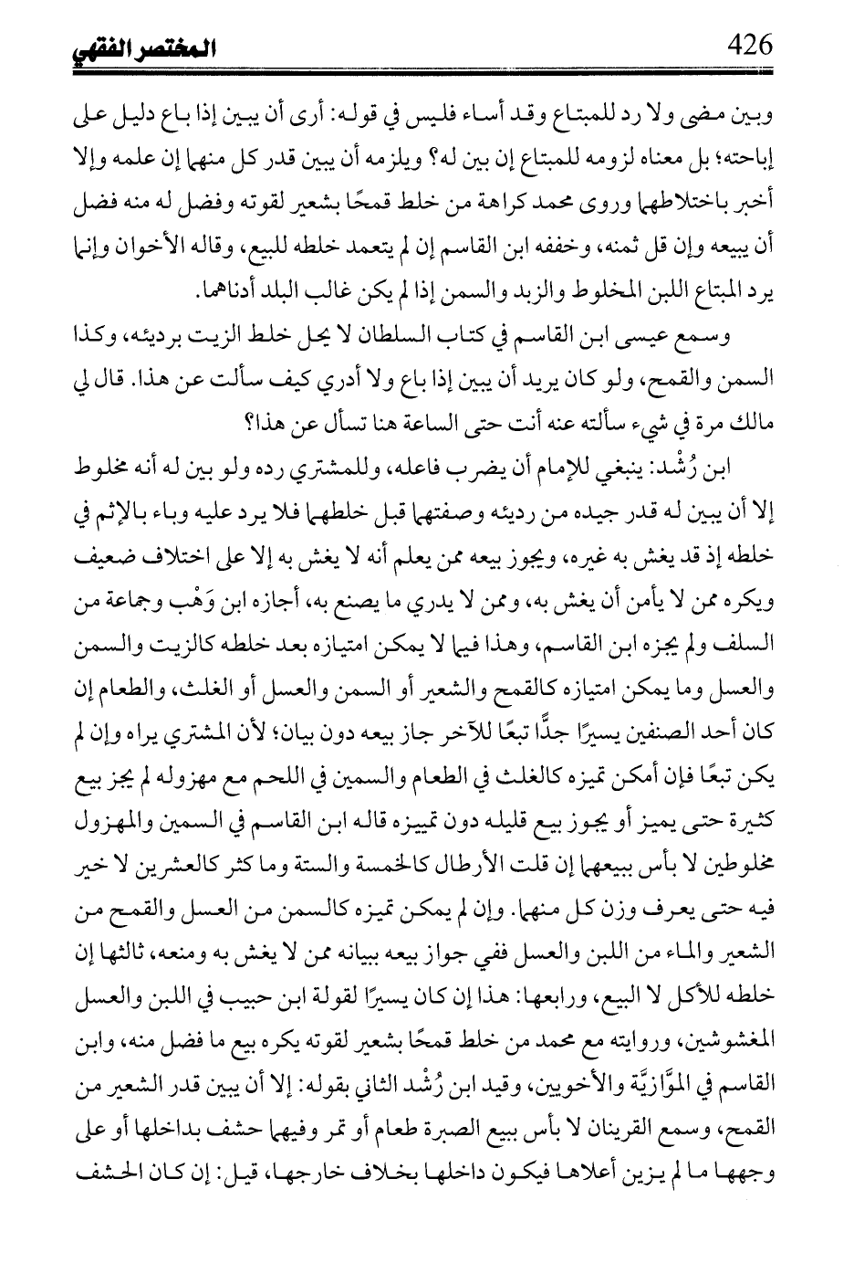 قُلتُ: ضعف حديث الخراج غير واحد، وعلى المشهور في تحتم رد صاع غيره وجواز رد عين اللبن إن تراضيا. ثالثها: ولم يغب على اللبن، ورابعها: إن حلبها بفوز شرائها تعين الرد مع المازري عنها، وابن رُشْد مع غيره عن سَحنون وابن رُشْد عن ابن وضاح واللخمي عن فهمه المذهب وفي كون الصاع من غالب عيش البلد أو التمر، ثالثها يرد مكيلة اللبن تمرًا أو قيمته للباجي عن المذهب، وابن رُشْد عن إلزام ابن لبابة منع أخذ لبنها مع قول مالك في حديث: «وصاعًا من تمر»، وهذا حديث متبع ليس لأحد فيه رأي، والباجي عن رواية زياد.
