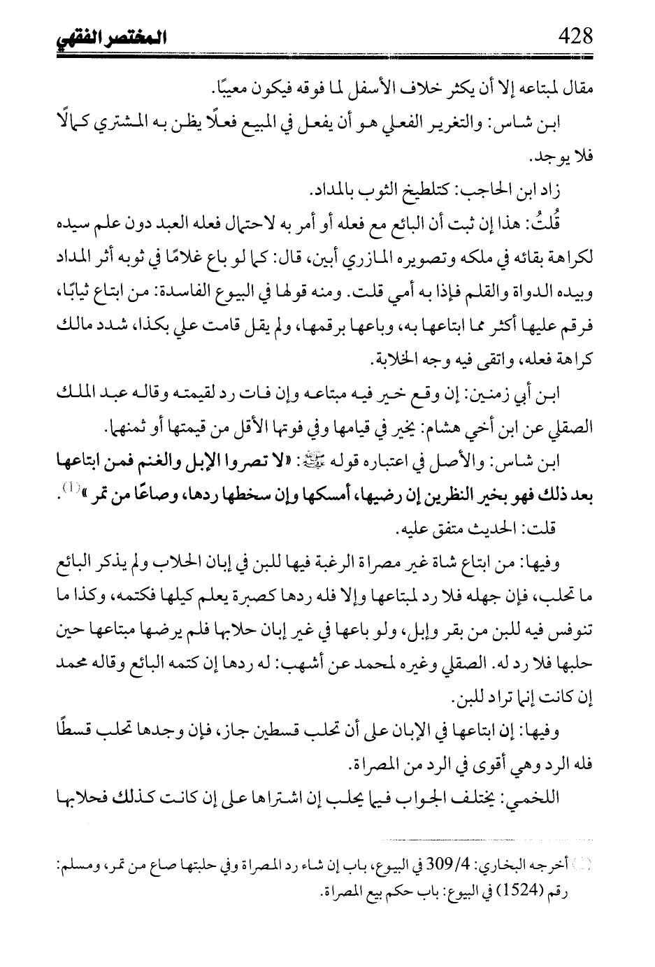 ابن زرقون: في اعتبارها في كل شيء، ثالثها: في الرقيق، ورابعها: وفي الحيوان لراية الأخوين والقاضي، والمشهور والموطأ، وعزا المتيطي الأول لأشهب وابن كنانة وابن حبيب وابن وَهْب مع الرواية المذكورة.