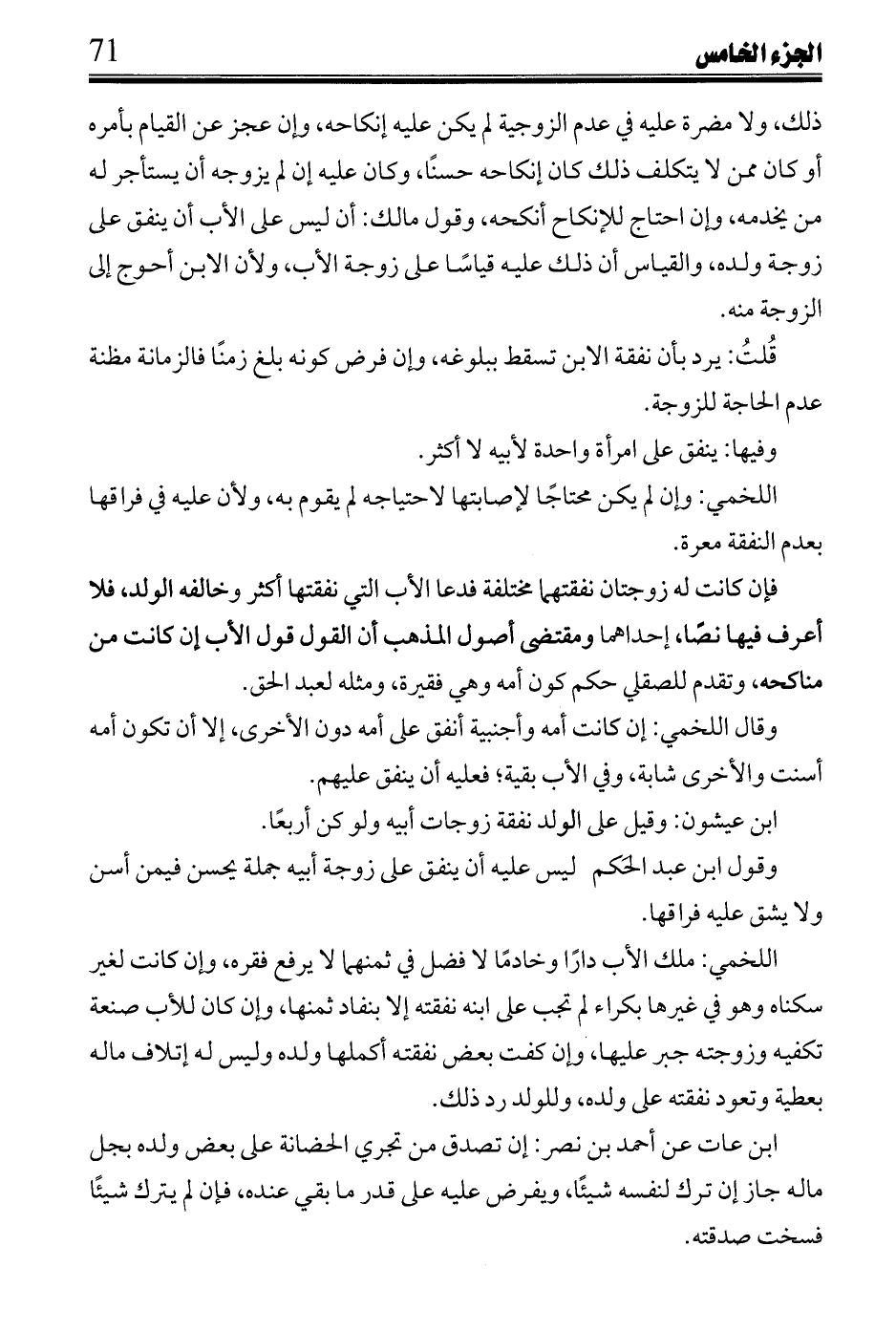 ابن عيشون: وقيل على الولد نفقة زوجات أبيه ولو كن أربعًا.