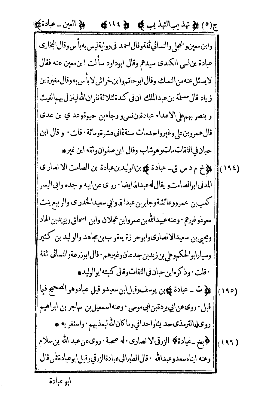196 - "بخ – عبادة" الزرقي الأنصاري له صحبة روى عن عبد الله بن سلام وعنه أبناه سعد وعبد الله قال الطبراني عبادة الزرقي وقيل أبو عبادة فمن قال