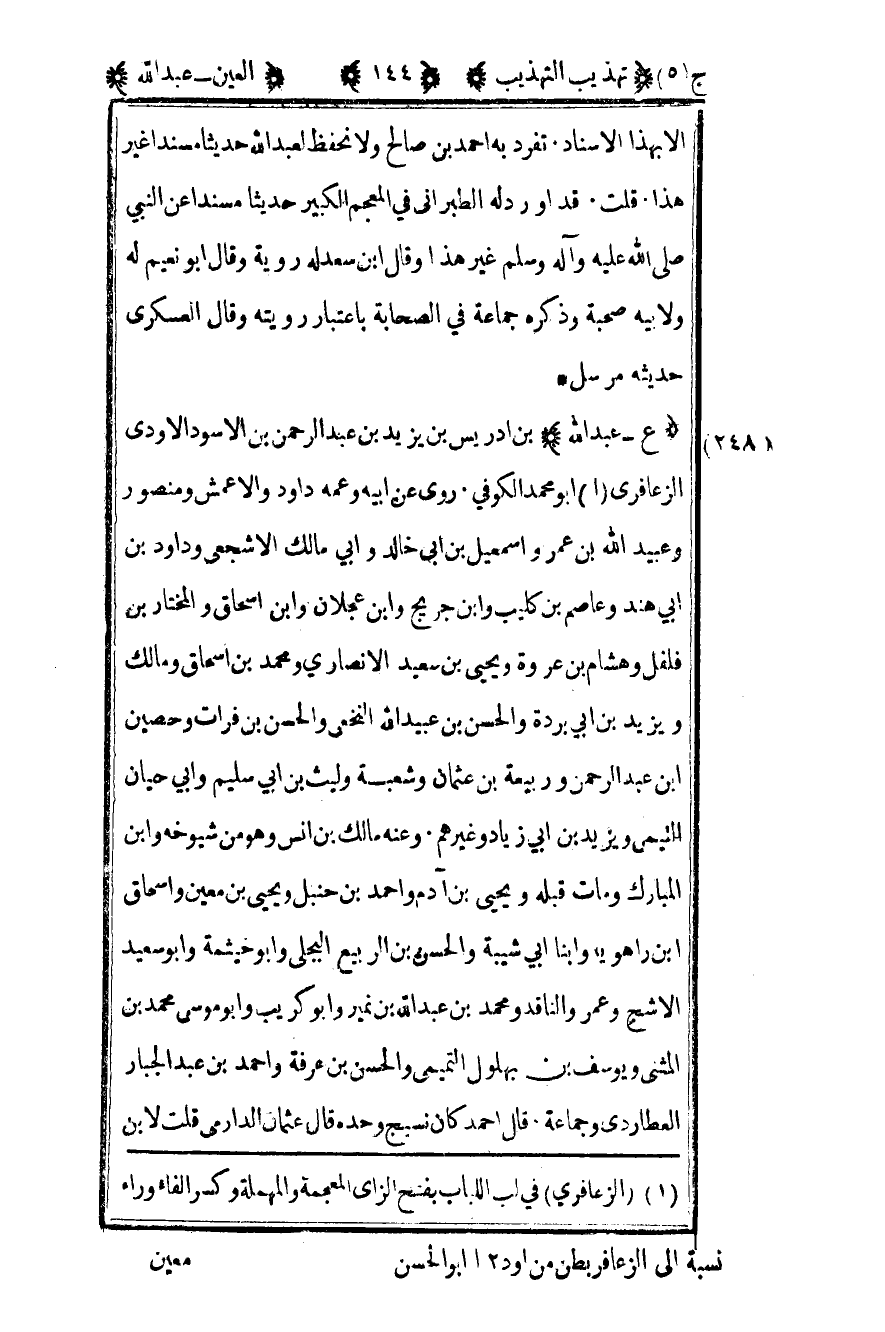 1"الزعافري" في لب اللباب بفتح الزاي المعجمة والمهملة وكسر الفاء وراء نسبة إلى الزعافر بطن من أود 12 أبو الحسن