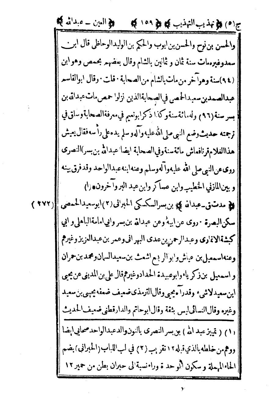 1 "تمييز عبد الله" بن بسر النصري بالنون والد عبد الواحد صحابي أيضا ووهم من خلطه بالذي قبله 12 تقريب.