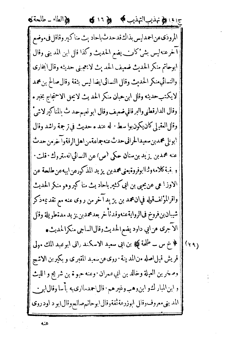29 - "خ س – طلحة" بن أبي سعيد الإسكندراني أبو عبد الملك مولى قريش قيل أصله من المدينة روى عن سعيد المقبري وبكير بن الأشج وصخر بن العيلة وخالد بن أبي عمران وعنه حيوة بن شريح والليث وابن المبارك وابن وهب وغيرهم قال أحمد ما أرى به بأسا وقال ابن المديني معروف وقال أبو زرعة ثقة وقال أبو حاتم صالح وقال أبو داود روى