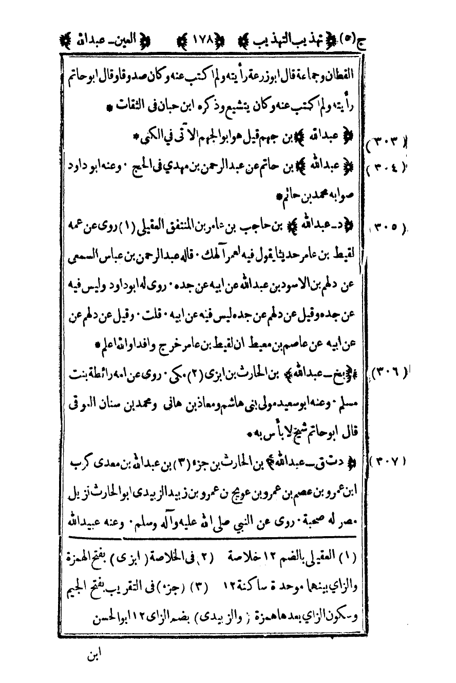 304 - "عبد الله" بن حاتم عن عبد الرحمن بن مهدي في الحج وعنه أبو داود صوابه محمد بن حاتم.