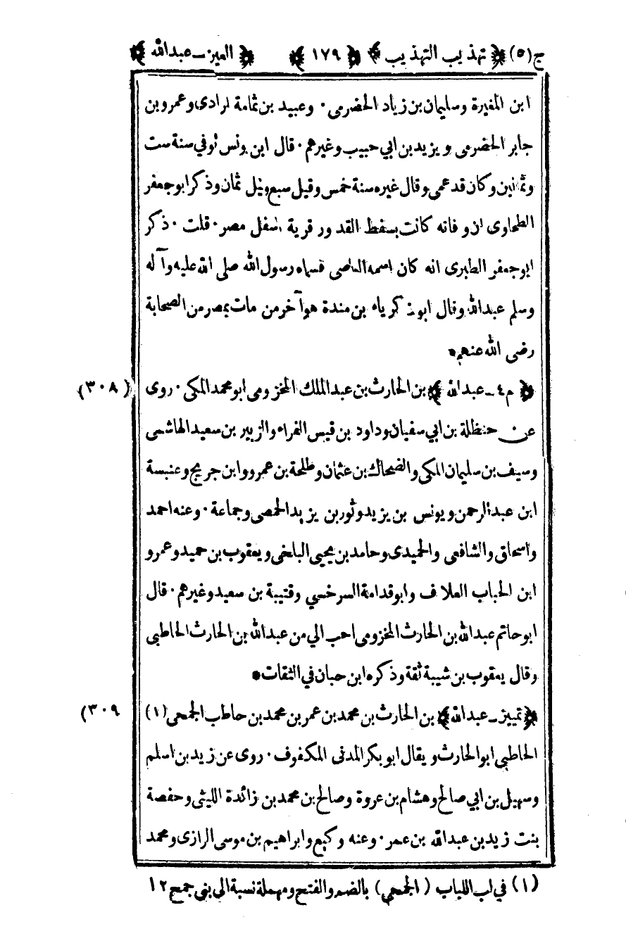 309 - "تمييز - عبد الله" بن الحارث بن محمد بن عمر بن محمد بن حاطب الجمحي1 الحاطبي أبو الحارث ويقال أبو بكر المدني المكفوف روى عن زيد بن أسلم وسهيل بن أبي صالح وهشام بن عروة وصالح بن محمد بن زائدة الليثي وحفصة بنت زيد بن عبد الله بن عمر وعنه وكيع وإبراهيم بن موسى الرازي ومحمد