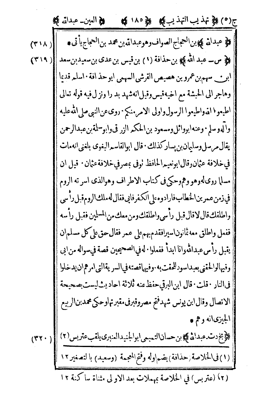 1 في الخلاصة "حذافة" بضم أوله وفتح المعجمة " وسعيد" بالتصغير 12