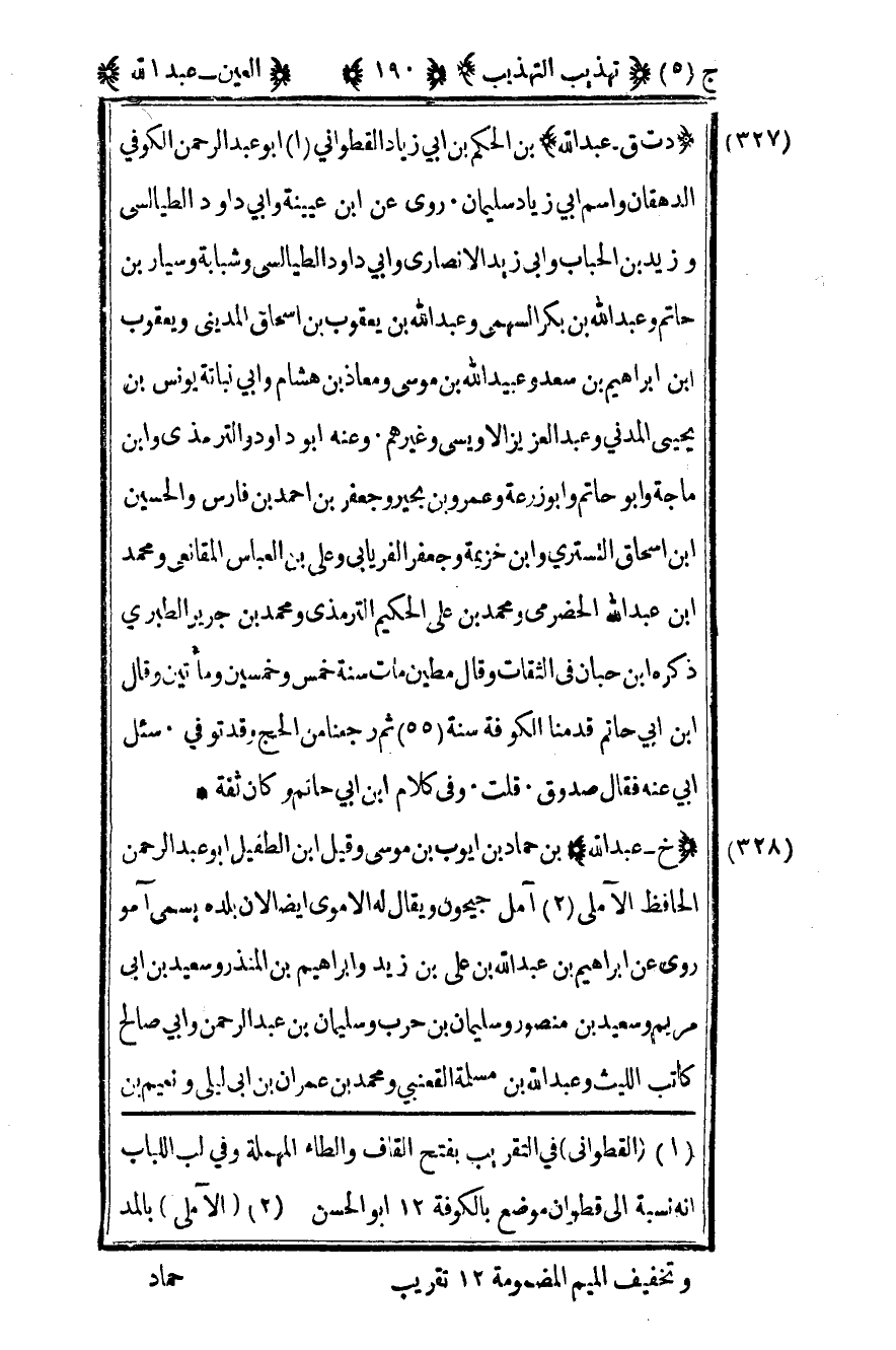 328 - "خ - عبد الله" بن حماد بن أيوب بن موسى وقيل بن الطفيل أبو عبد الرحمن الحافظ الآملي2 آمل جيحون ويقال له الأموي أيضا لأن بلده يسمى آمو روى عن إبراهيم بن عبد الله بن علي بن زيد وإبراهيم بن المنذر وسعيد بن أبي مريم وسعيد بن منصور وسليمان بن حرب وسليمان بن عبد الرحمن وأبي صالح كاتب الليث وعبد الله بن مسلمة القعنبي ومحمد بن عمران بن أبي ليلى ونعيم بن