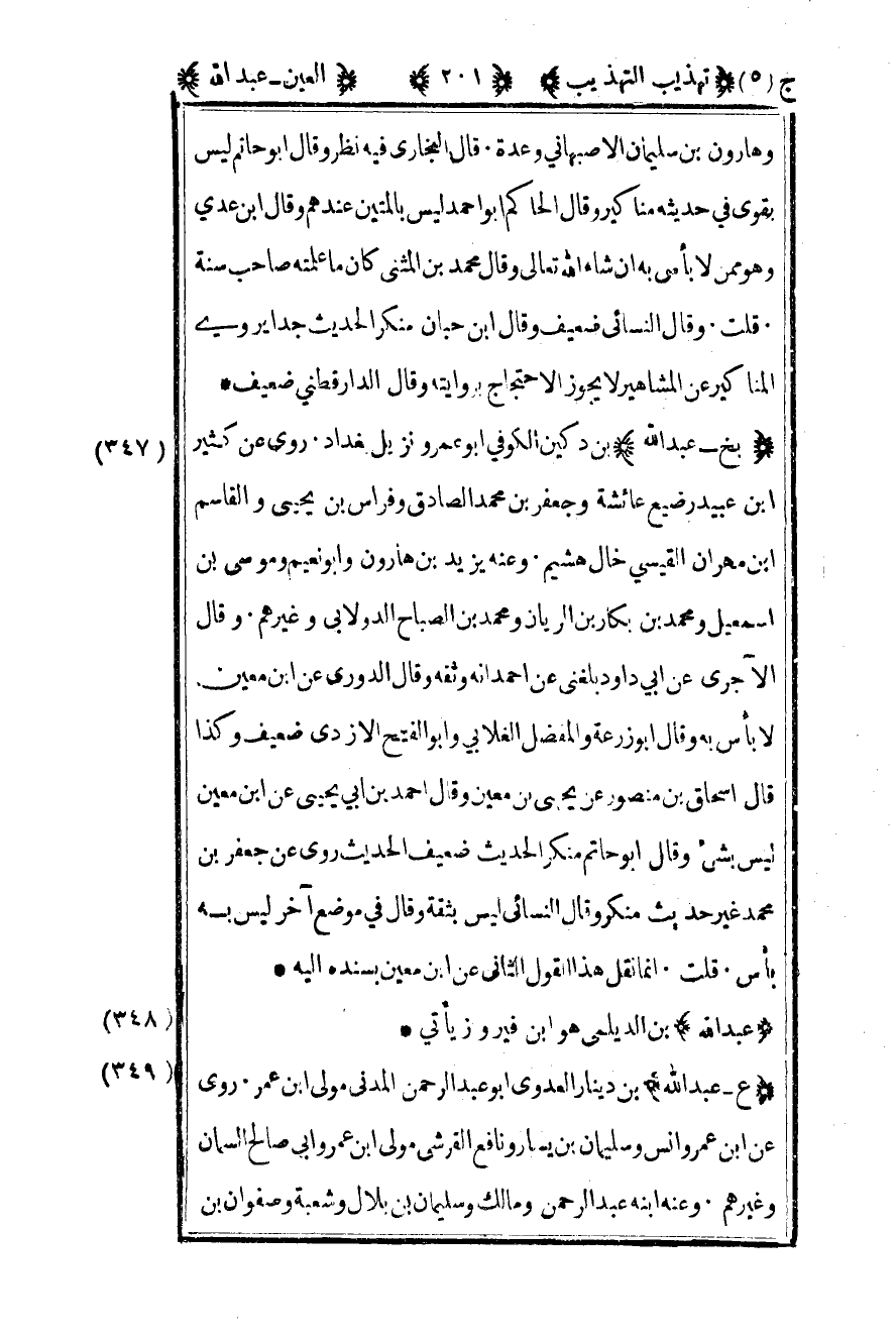 349 - "ع - عبد الله" بن دينار العدوي أبو عبد الرحمن المدني مولى بن عمر روى عن ابن عمر وأنس وسليمان بن يسار ونافع القرشي مولى بن عمر وأبي صالح السمان وغيرهم وعنه ابنه عبد الرحمن ومالك وسليمان بن بلال وشعبة وصفوان بن