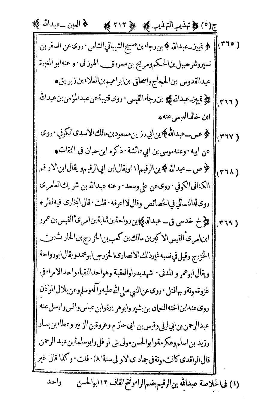 1في الخلاصة عبد الله بن الرقيم بضم الراء وفتح القاف 12 أبو الحسن