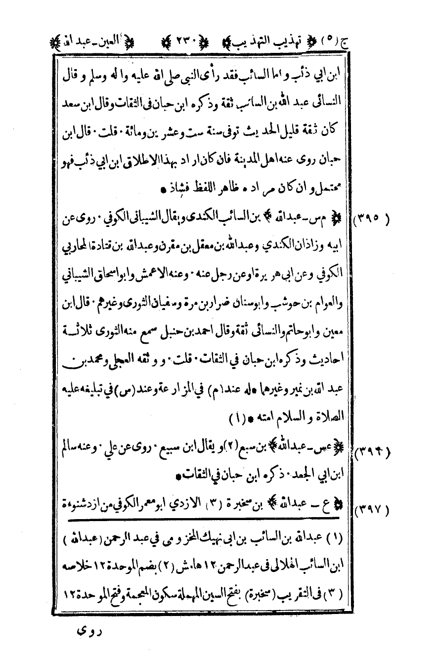 1عبد الله بن السائب بن أبي نهيك المخزومي في عبد الرحمن "عبد الله" ابن السائب الهلالي في عبد الرحمن 12 هامش.