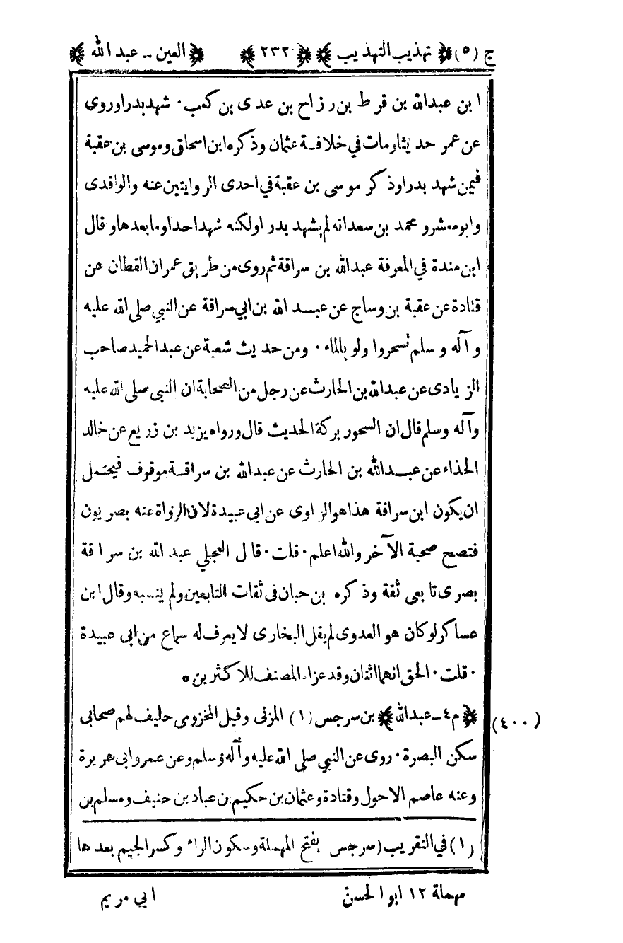 1في التقريب "سرجس" بفتح المهملة وسكون الراء وكسر الجيم بعدها مهملة 12 أبو الحسن