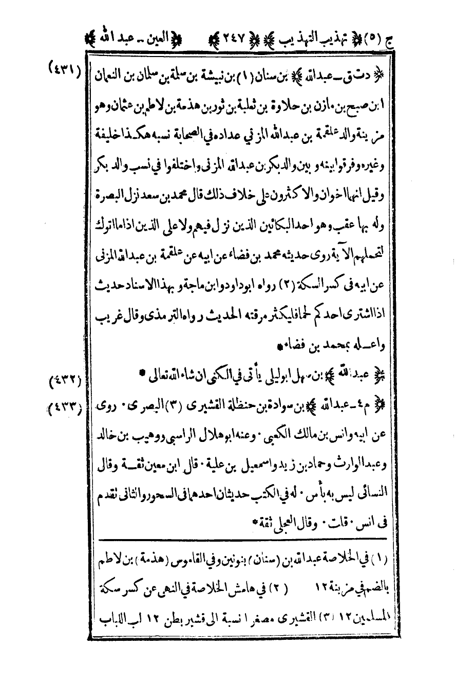 1 في الخلاصة عبد الله بن "سنان" بنونين وفي القاموس "هذمة" بن لاطم بالضم في مزبنة 12.